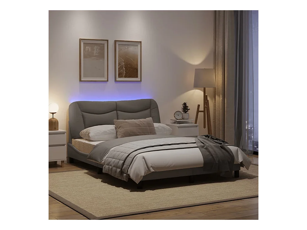 Cadre de lit avec lumières LED taupe 140x190 tissu