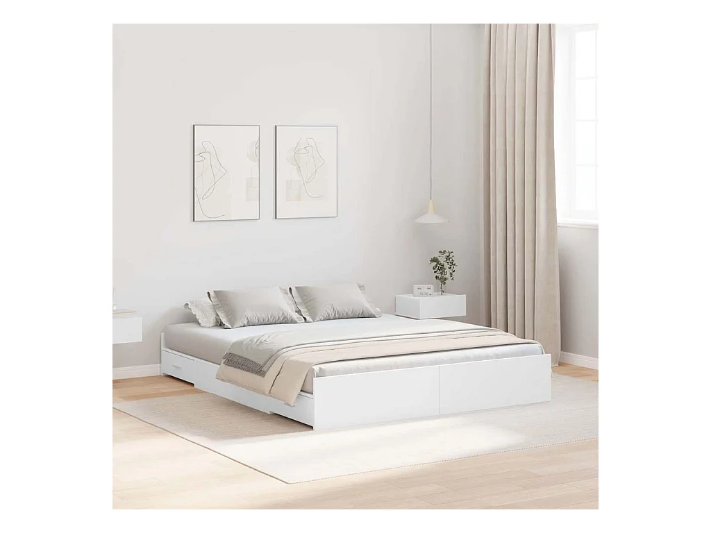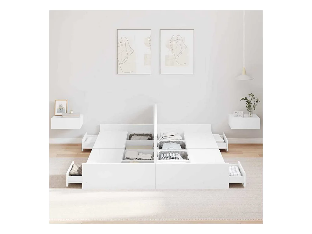 Cadre de lit avec rangement avec tête de lit Blanc 135 x 190 cm