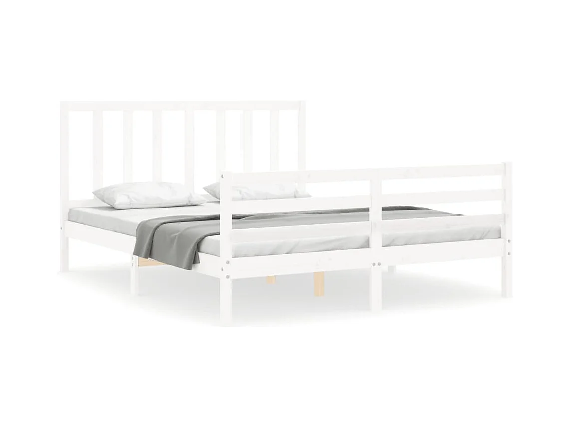 Cadre de lit avec tête de lit blanc 160x200 bois massif