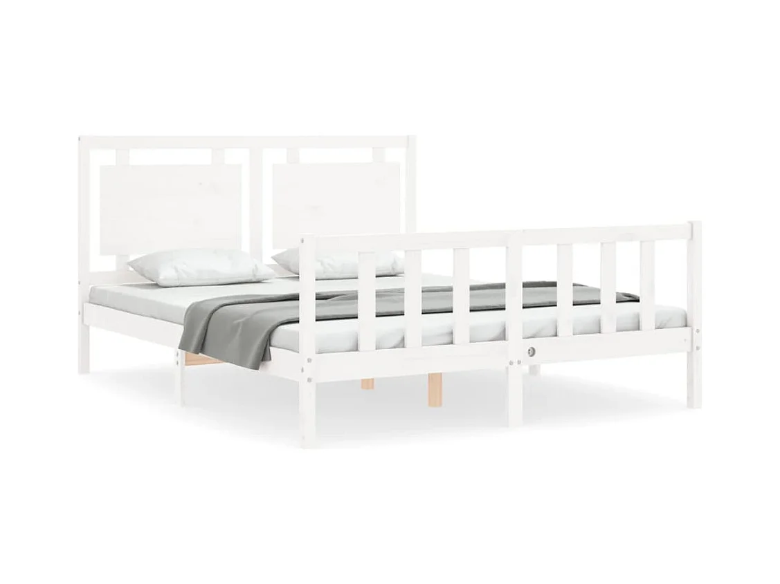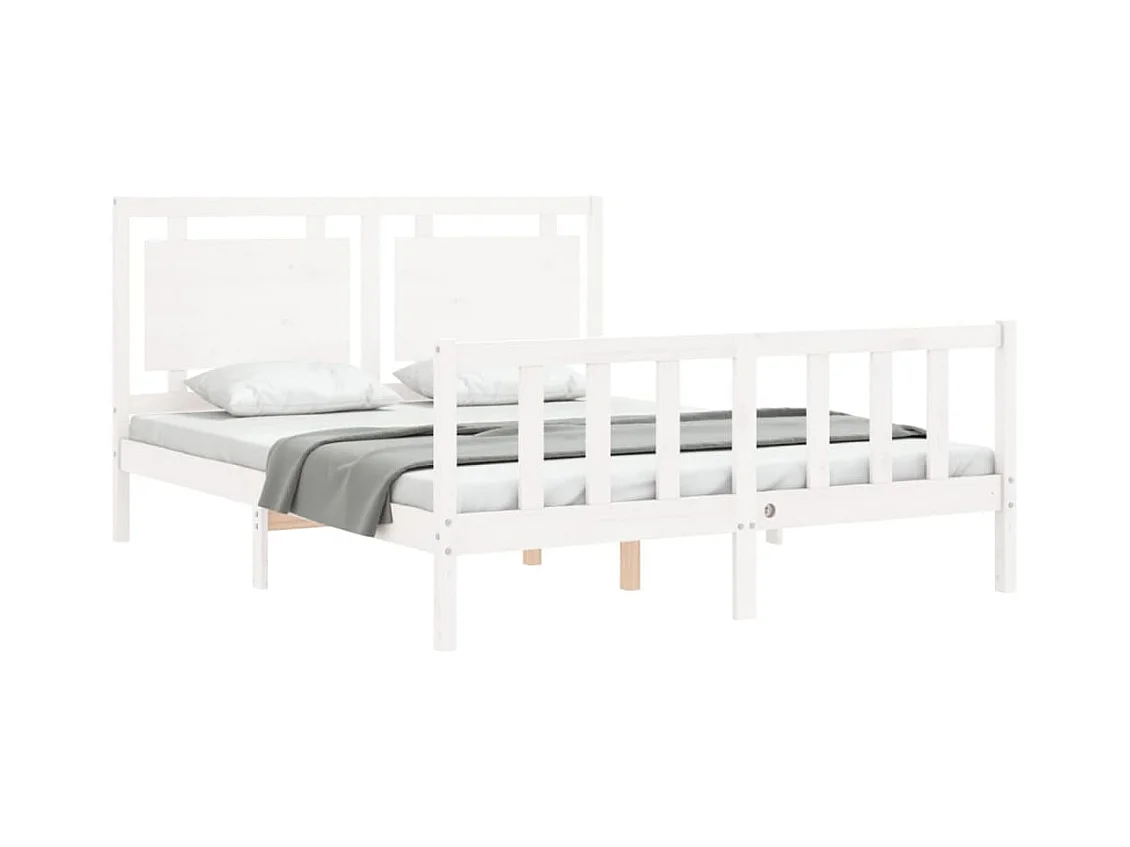 Cadre de lit avec tête de lit blanc 160x200 bois massif