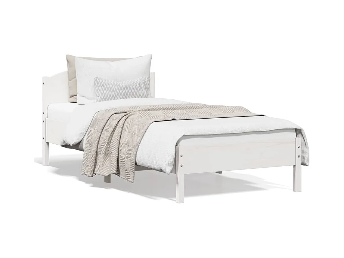 Cadre de lit avec tête de lit blanc 90x200 bois de pin massif