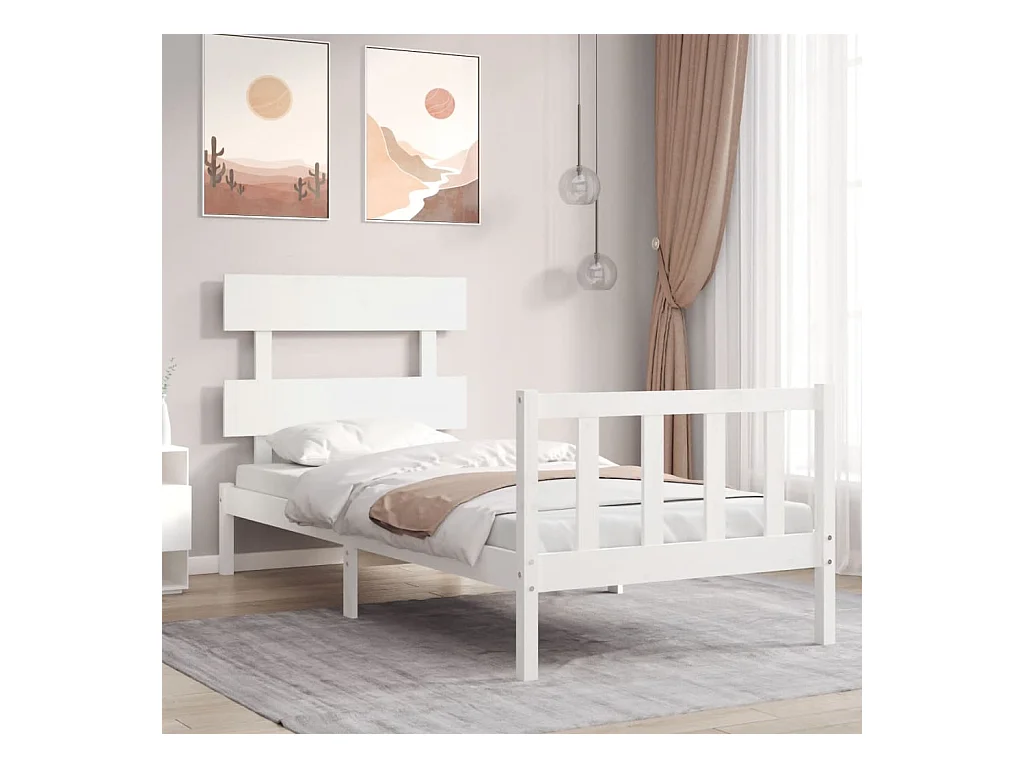 Cadre de lit avec tête de lit blanc 90x200 bois massif