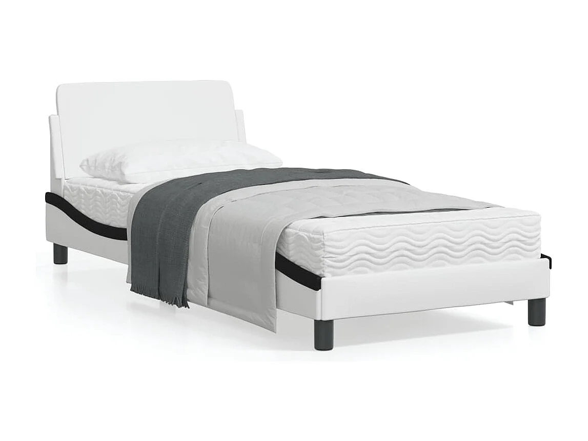 Cadre de lit avec tête de lit blanc et noir 80x200 similicuir