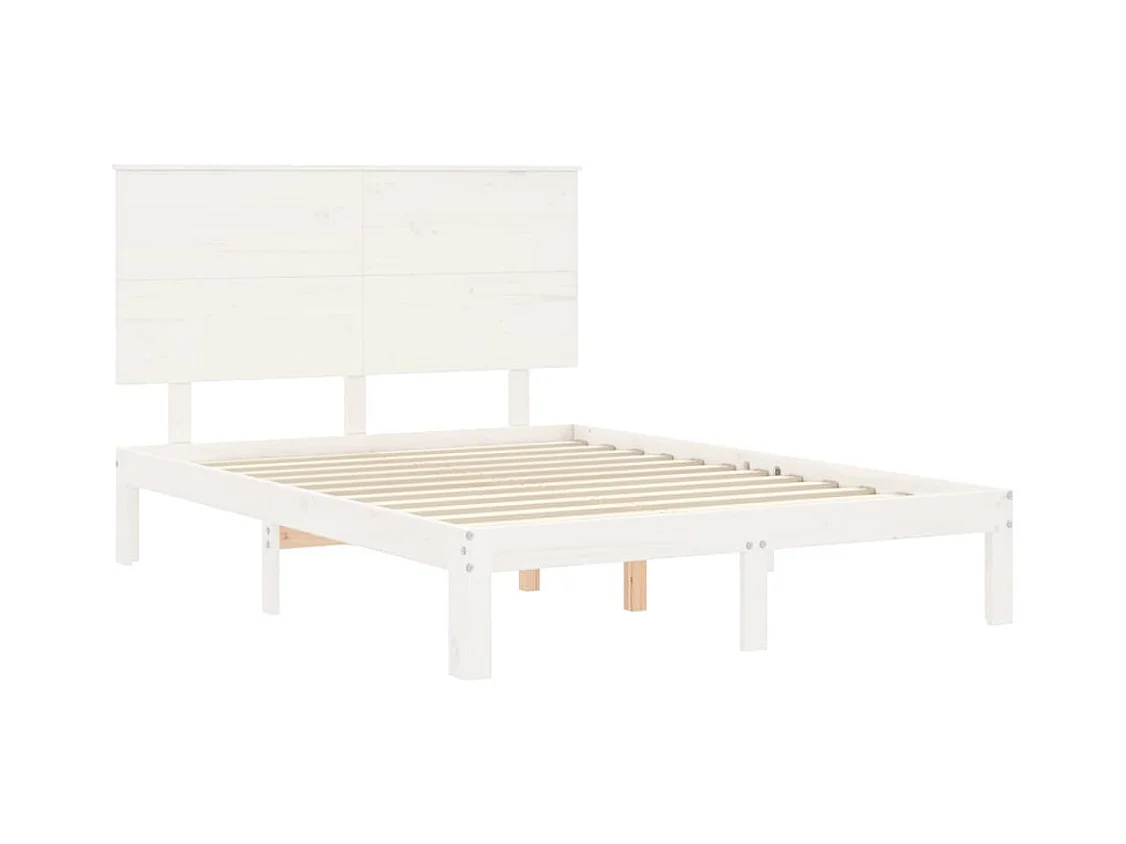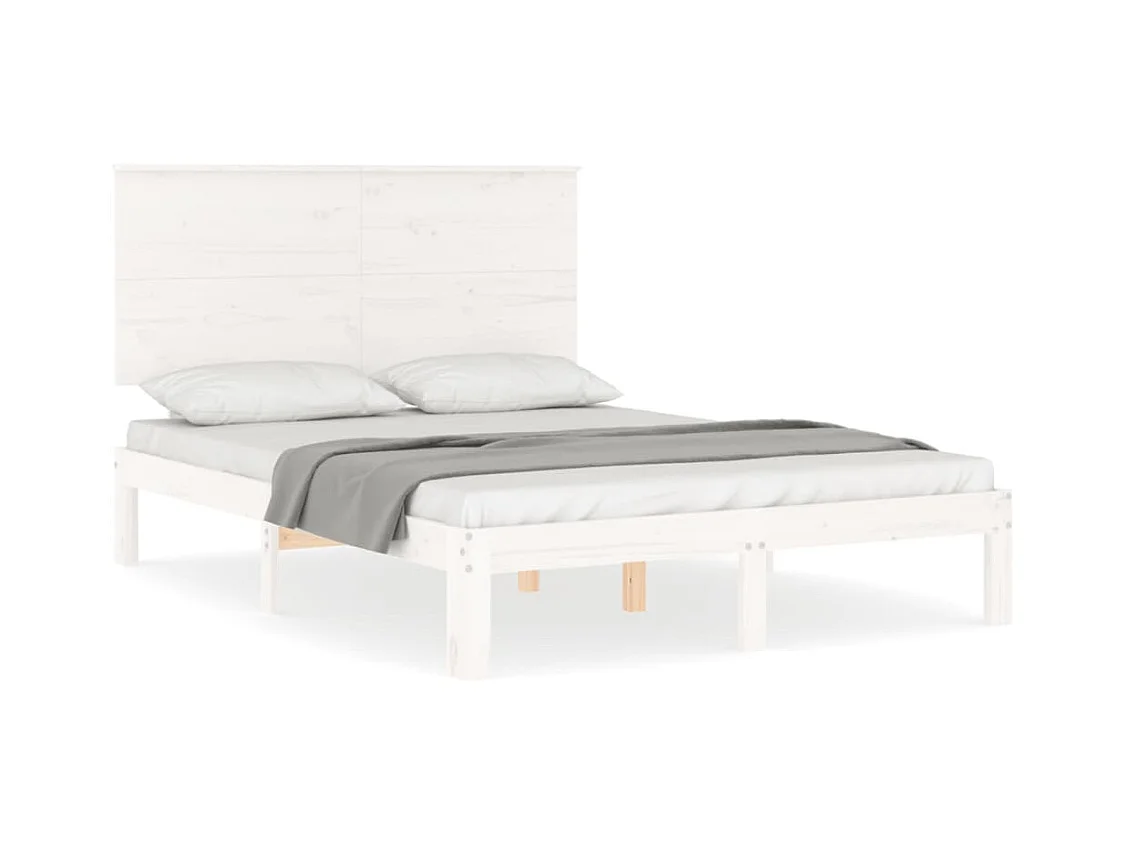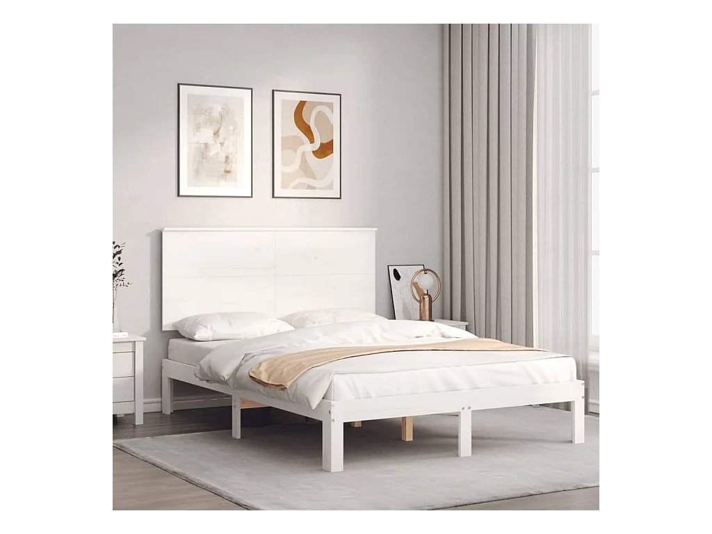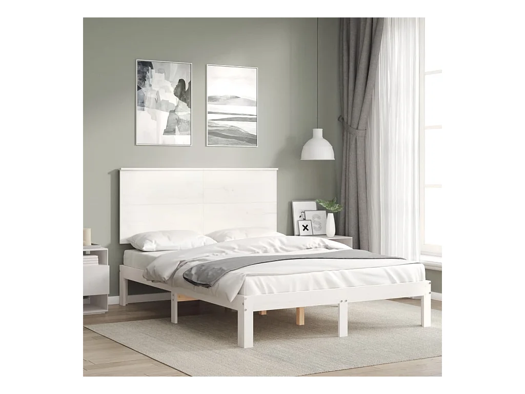 Cadre de lit avec tête de lit blanc petit double bois massif