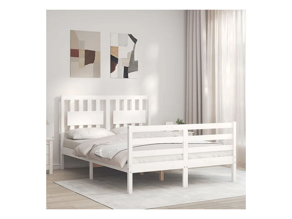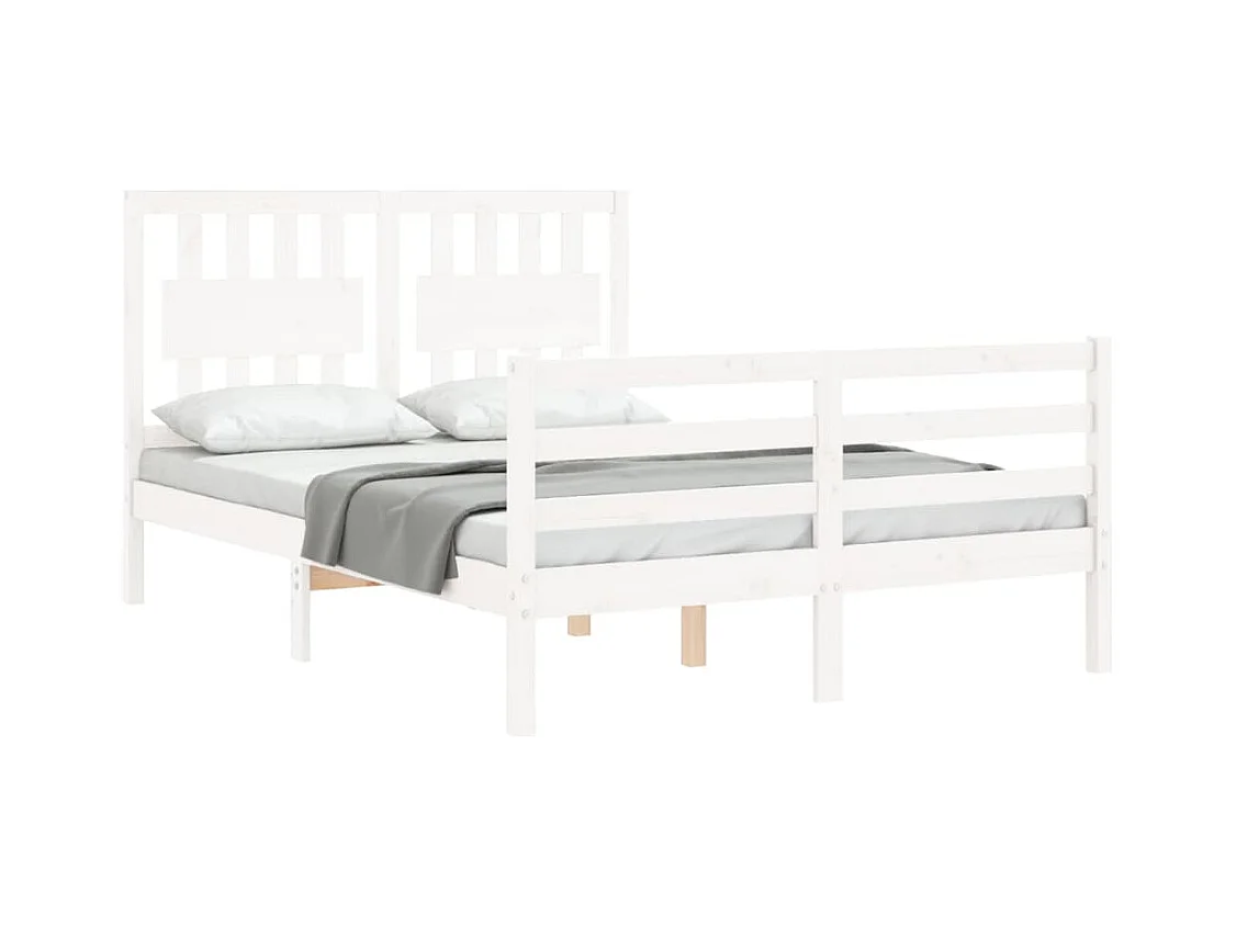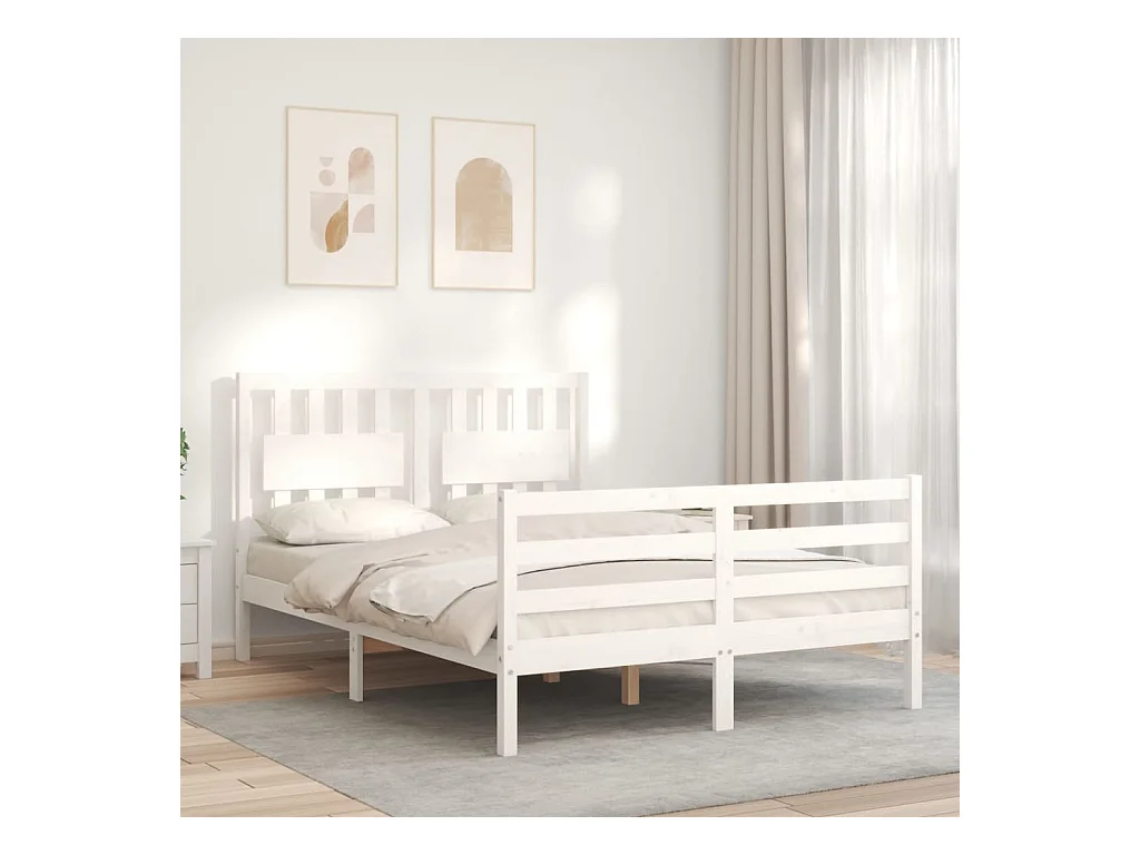 Cadre de lit avec tête de lit blanc petit double bois massif
