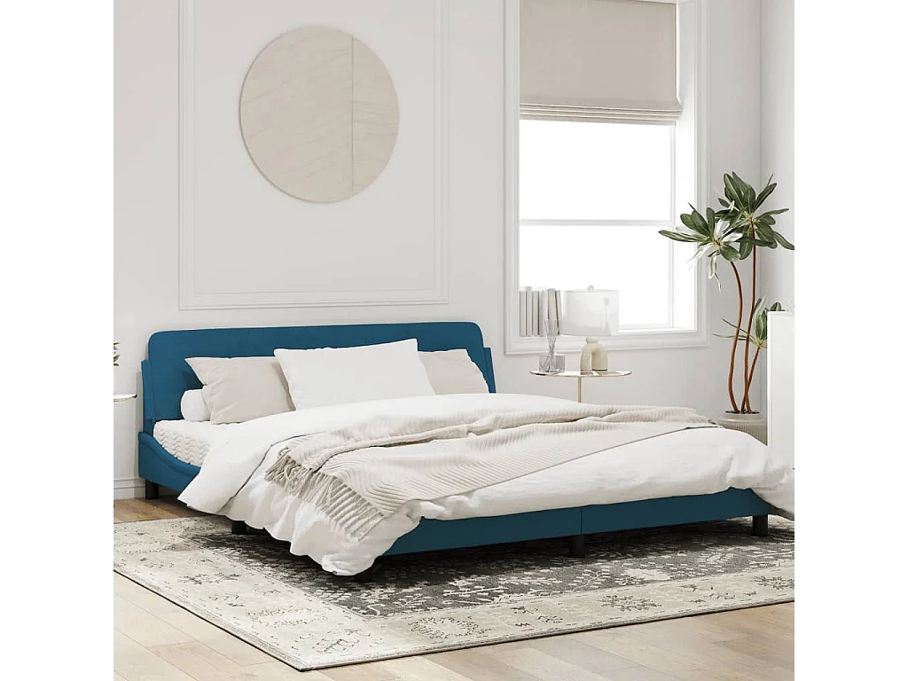 Cadre de lit avec tête de lit bleu 180x200 velours
