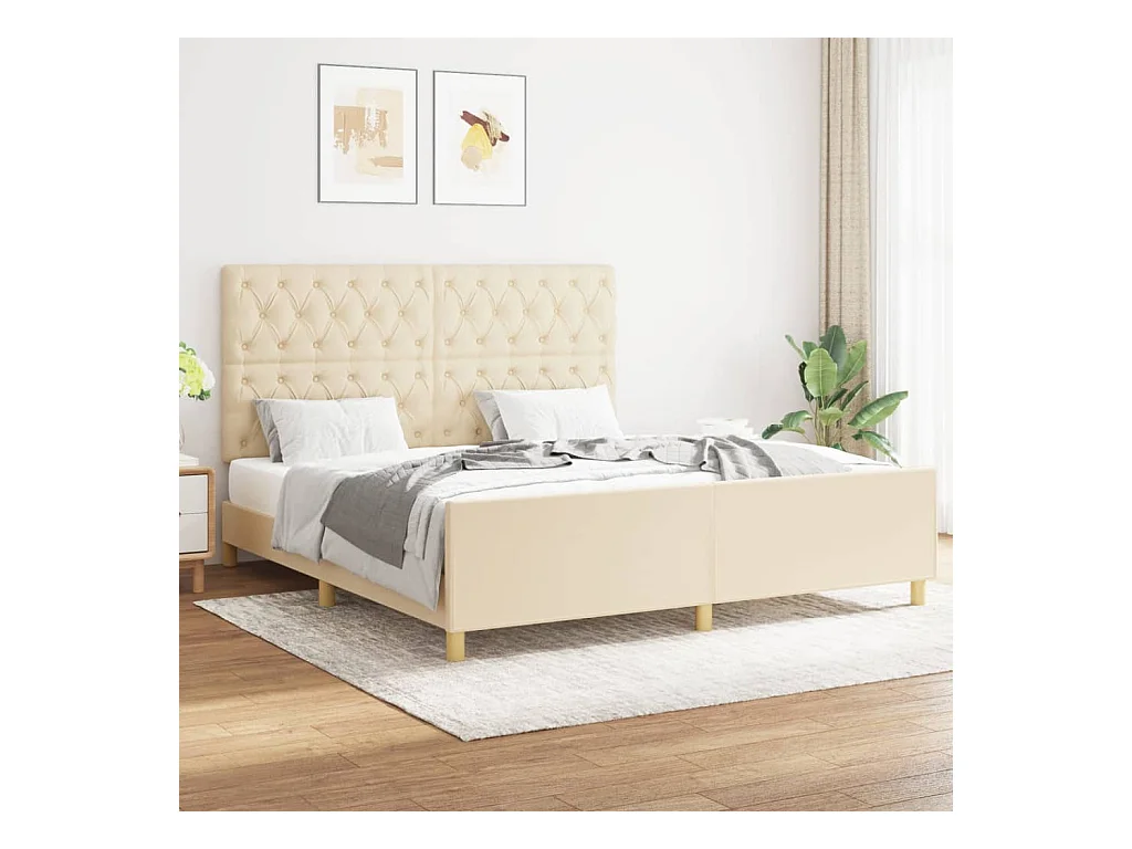 Cadre de lit avec tête de lit Crème 160 x 200 cm Tissu