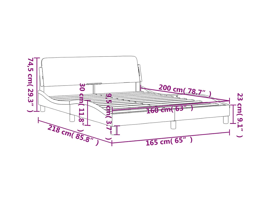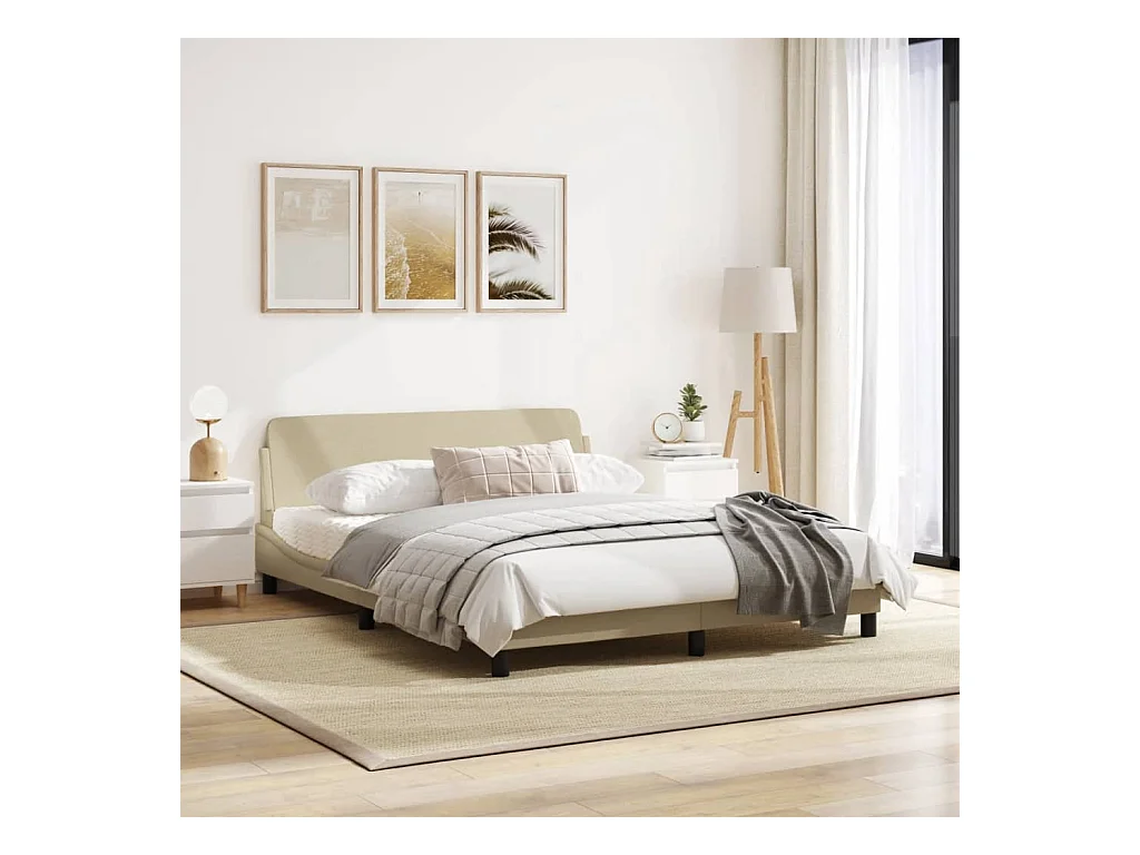 Cadre de lit avec tête de lit Crème 160 x 200 cm Tissu