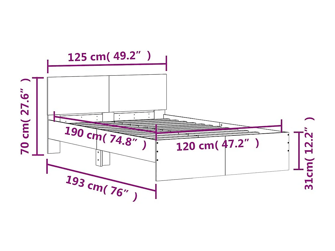 Cadre de lit sans matelas chêne marron 120x190 cm