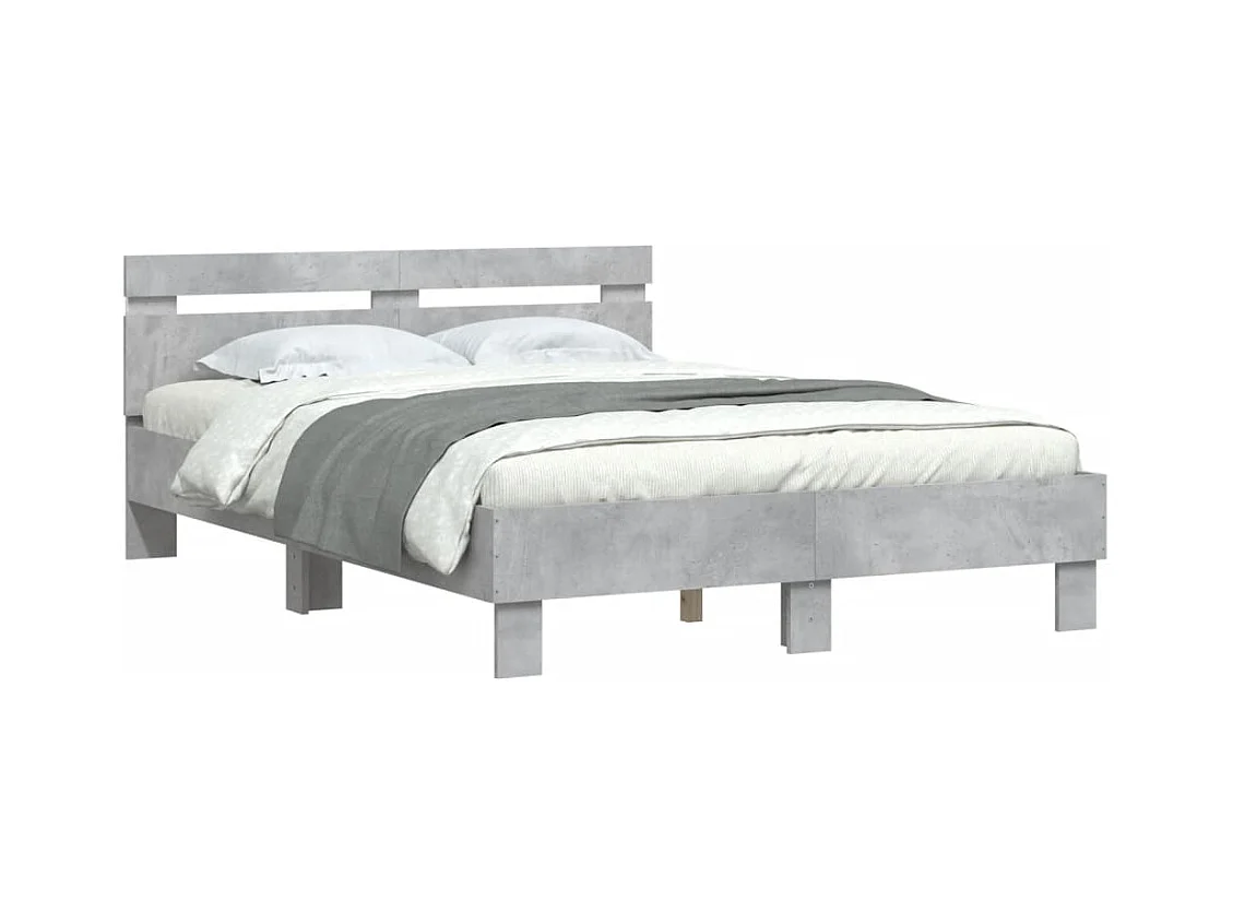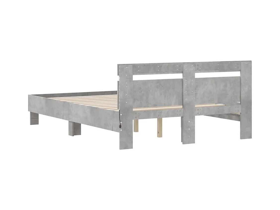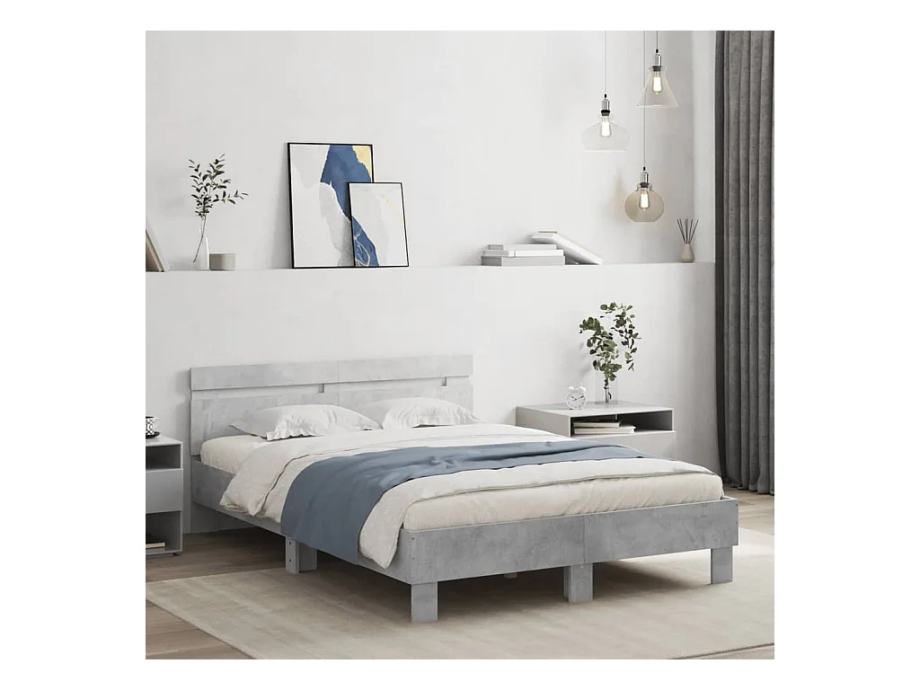Cadre de lit avec tête de lit et LED gris béton 120x200