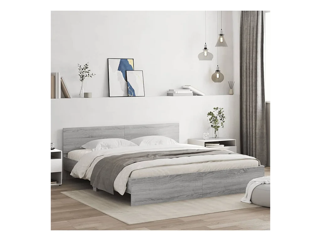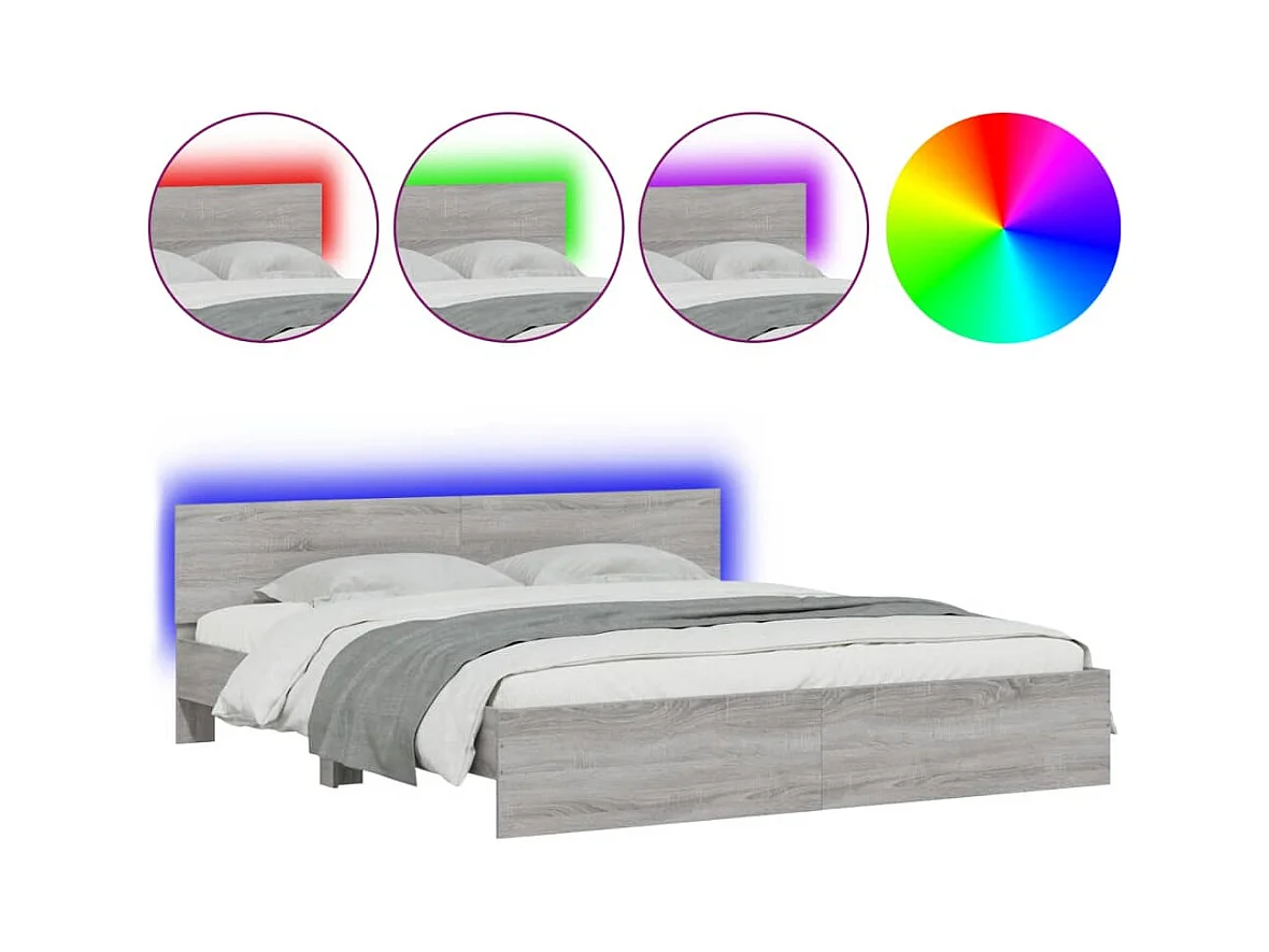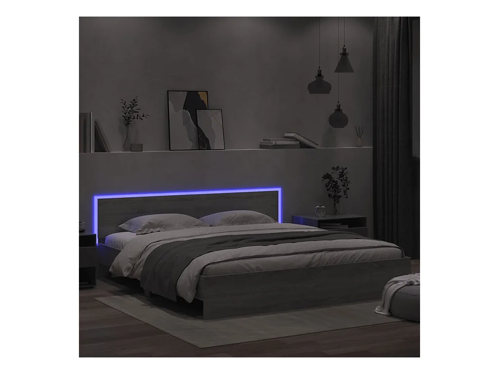 Cadre de lit avec tête de lit et LED sonoma gris 200x200