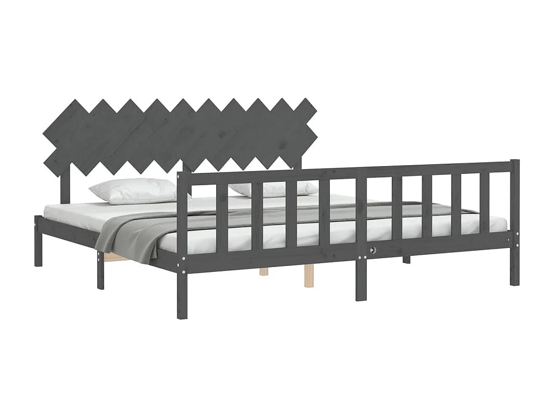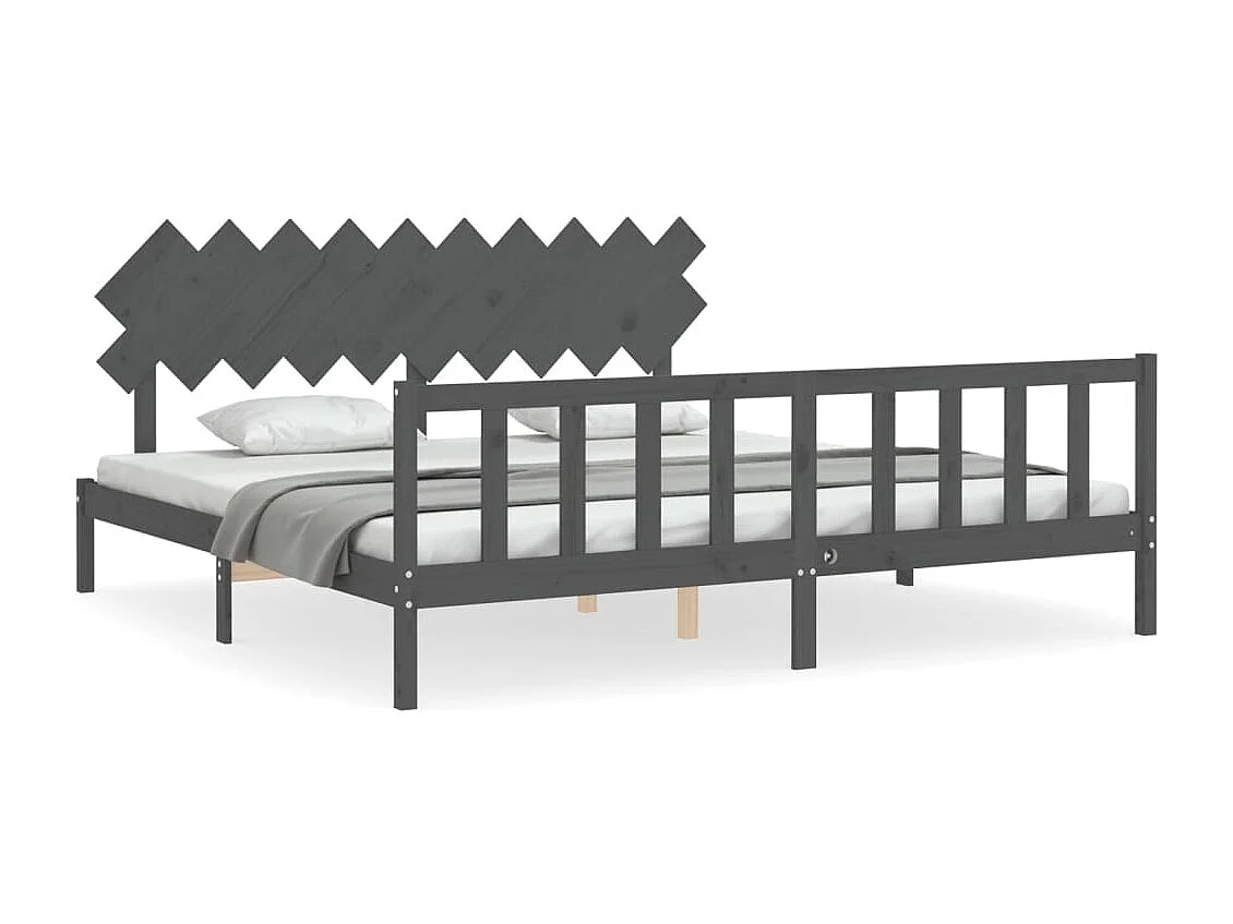 Cadre de lit avec tête de lit gris 200x200 bois massif