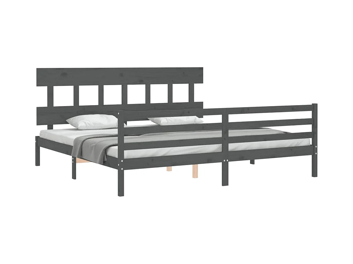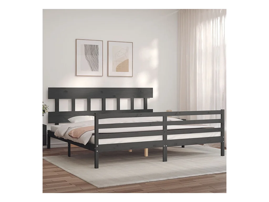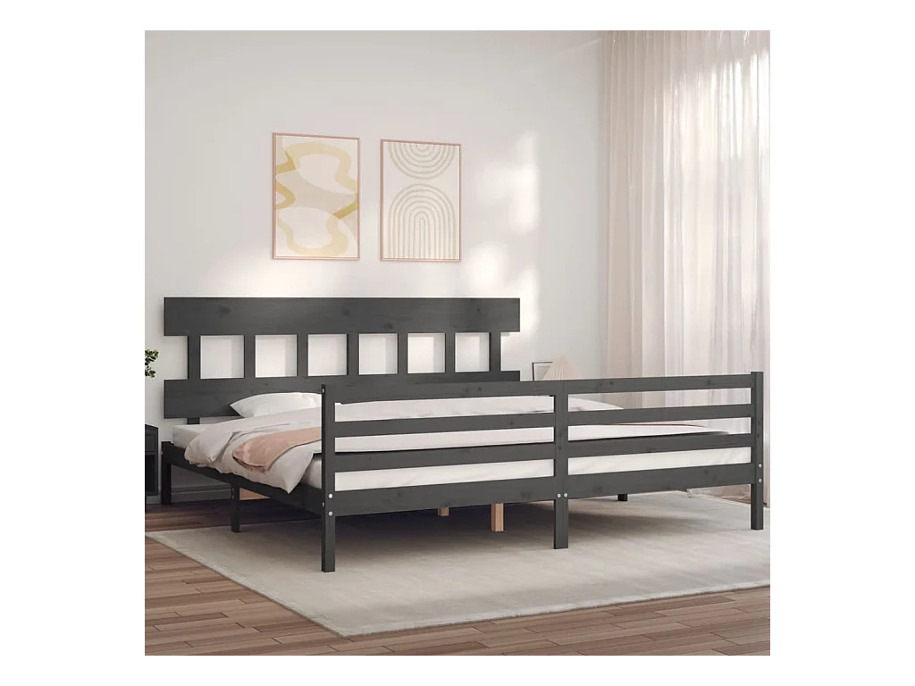 Cadre de lit avec tête de lit gris 200x200 bois massif