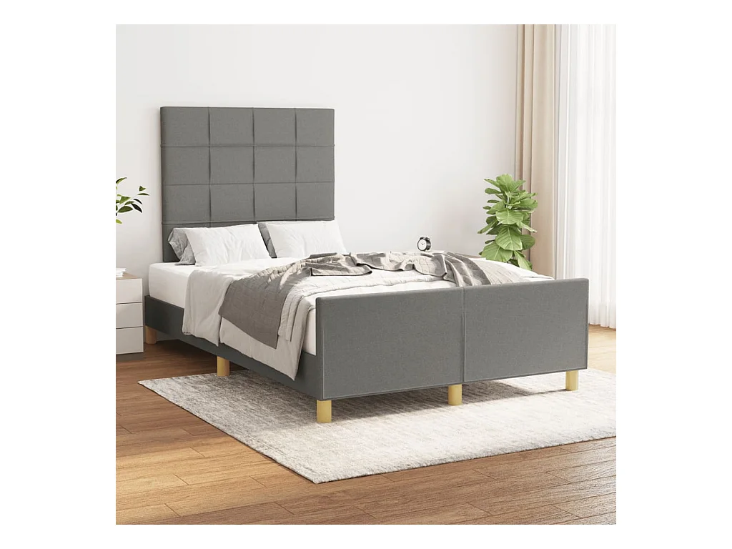 Cadre de lit avec tête de lit gris foncé 120x190 tissu