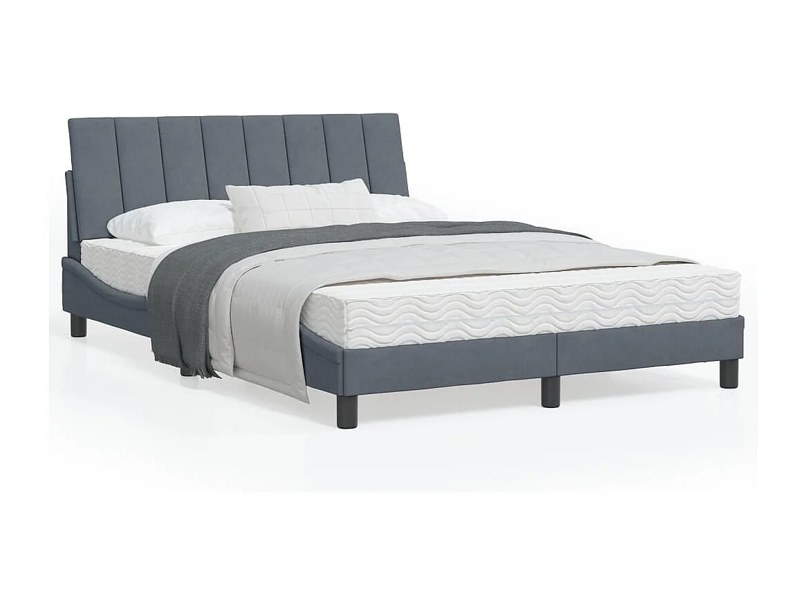 Cadre de lit avec tête de lit Gris foncé 140x200 Velours