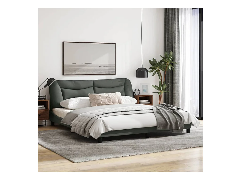 Cadre de lit avec tête de lit Gris foncé 180x200 Tissu