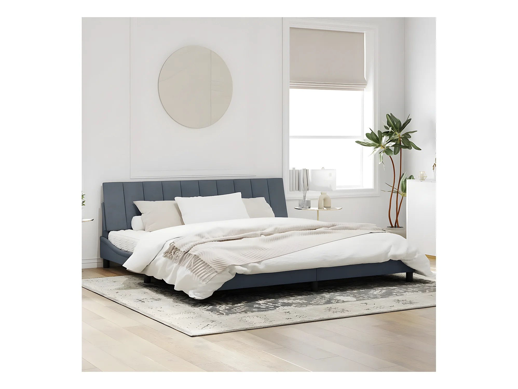 Cadre de lit avec tête de lit Gris foncé 200x200 Velours