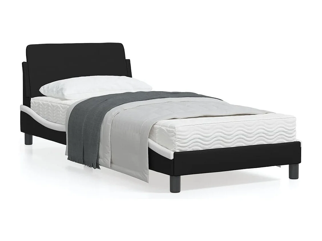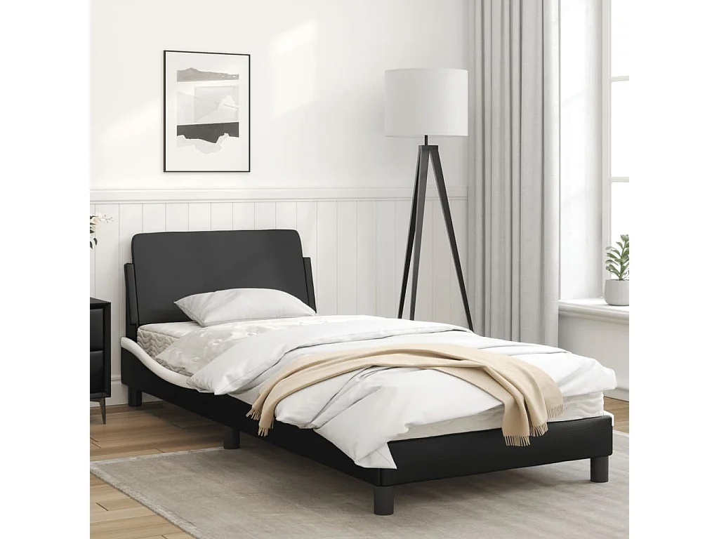 Cadre de lit avec tête de lit noir et blanc 90x200 similicuir
