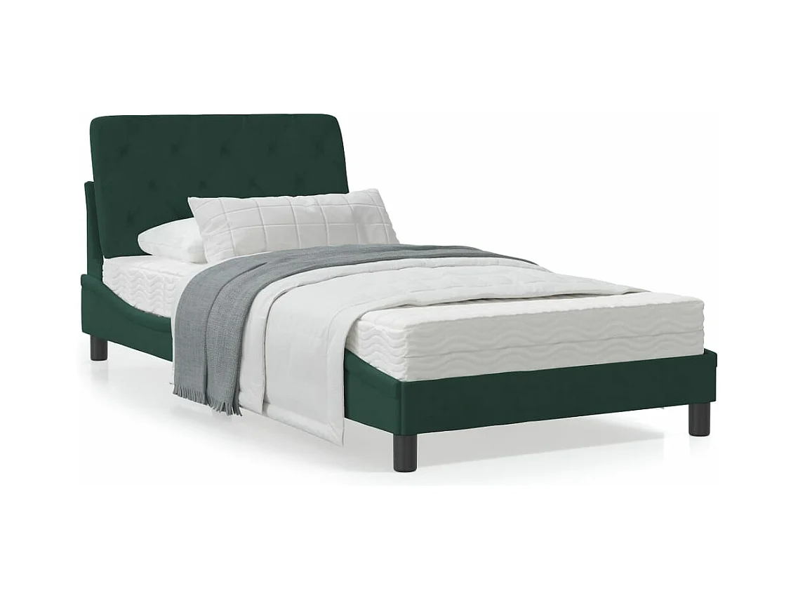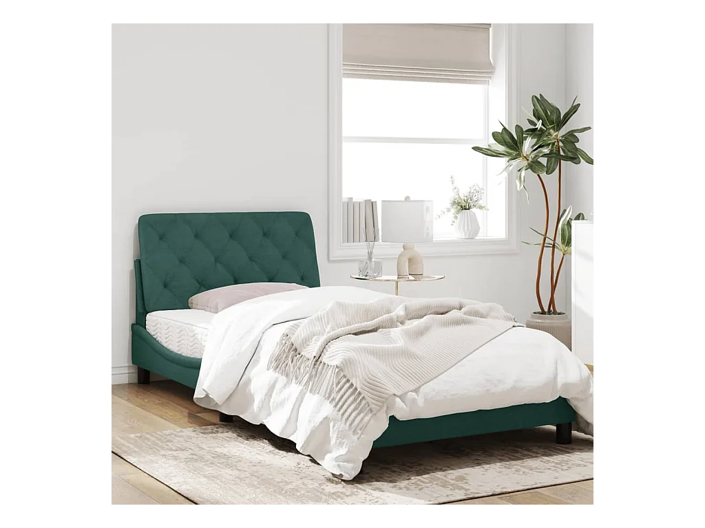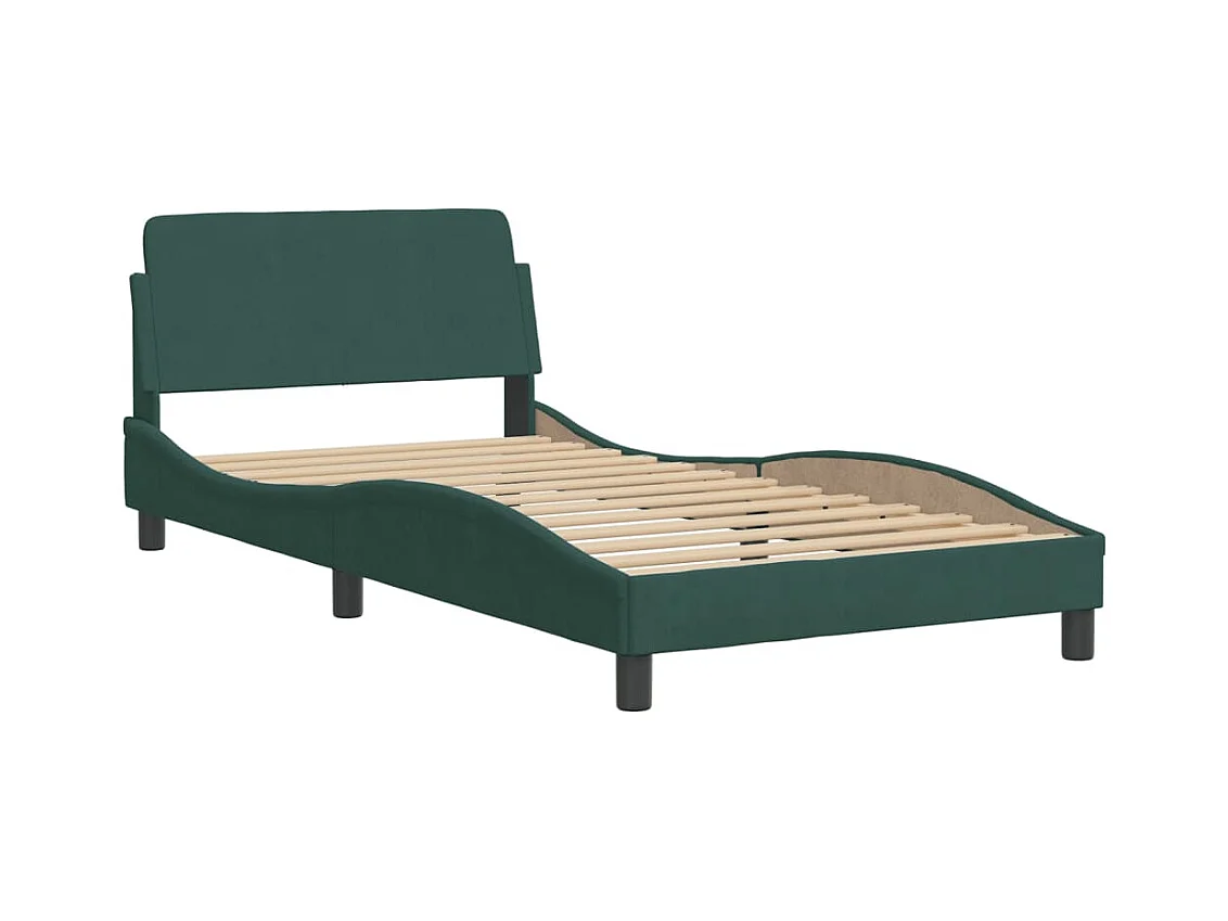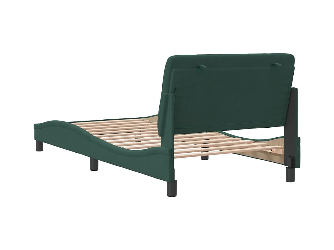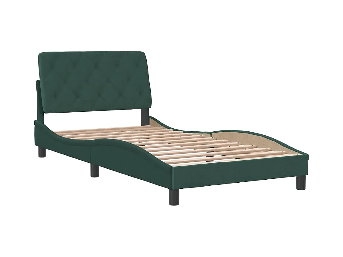 Cadre de lit avec tête de lit Vert foncé 100x200 Velours