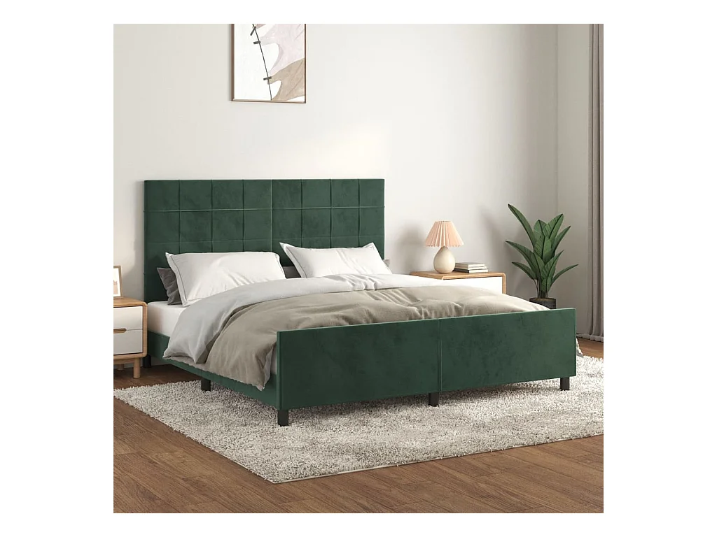 Cadre de lit avec tête de lit Vert foncé 160x200 cm Velours