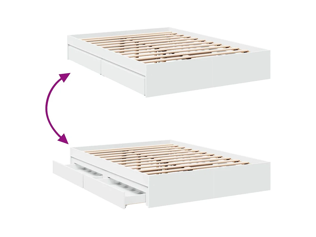 Cadre de lit avec tiroirs blanc 135x190 cm bois d'ingénierie