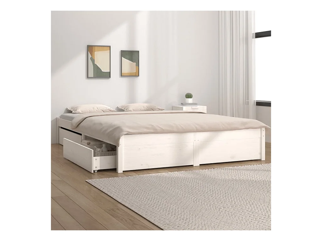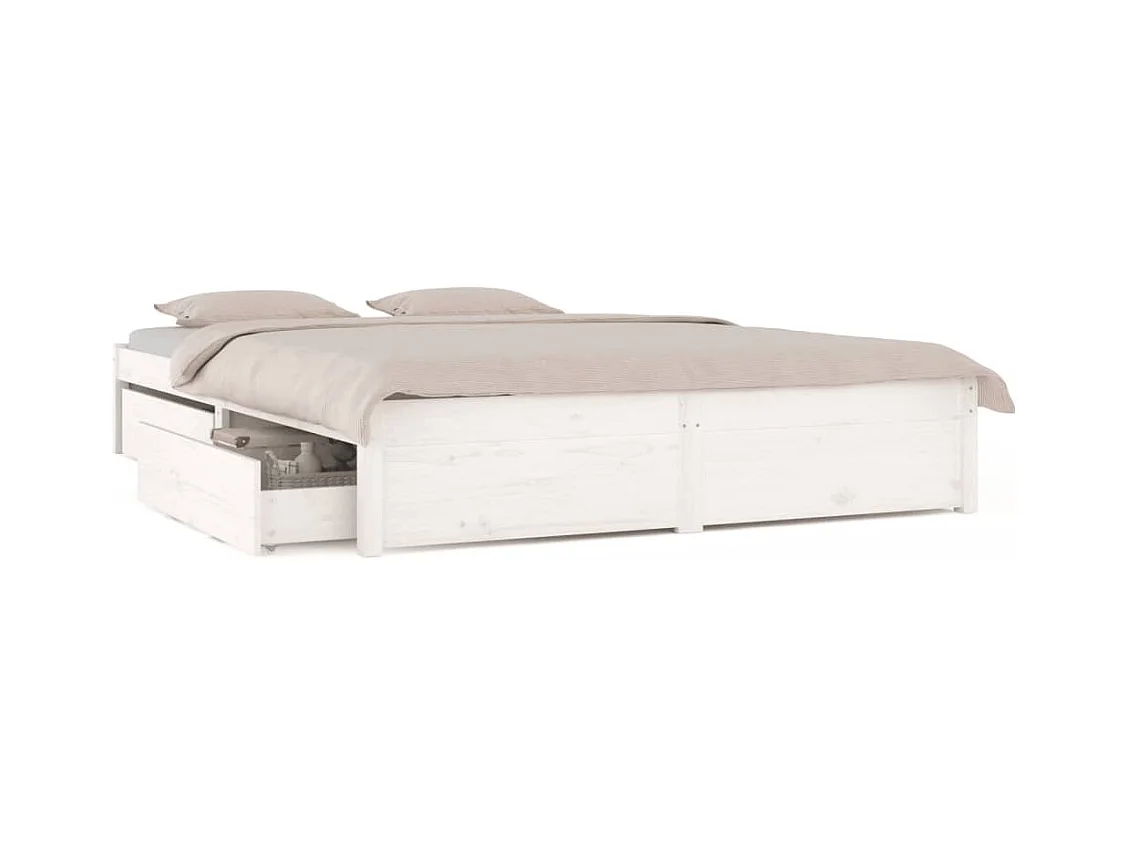 Cadre de lit avec tiroirs Blanc 140x200 cm