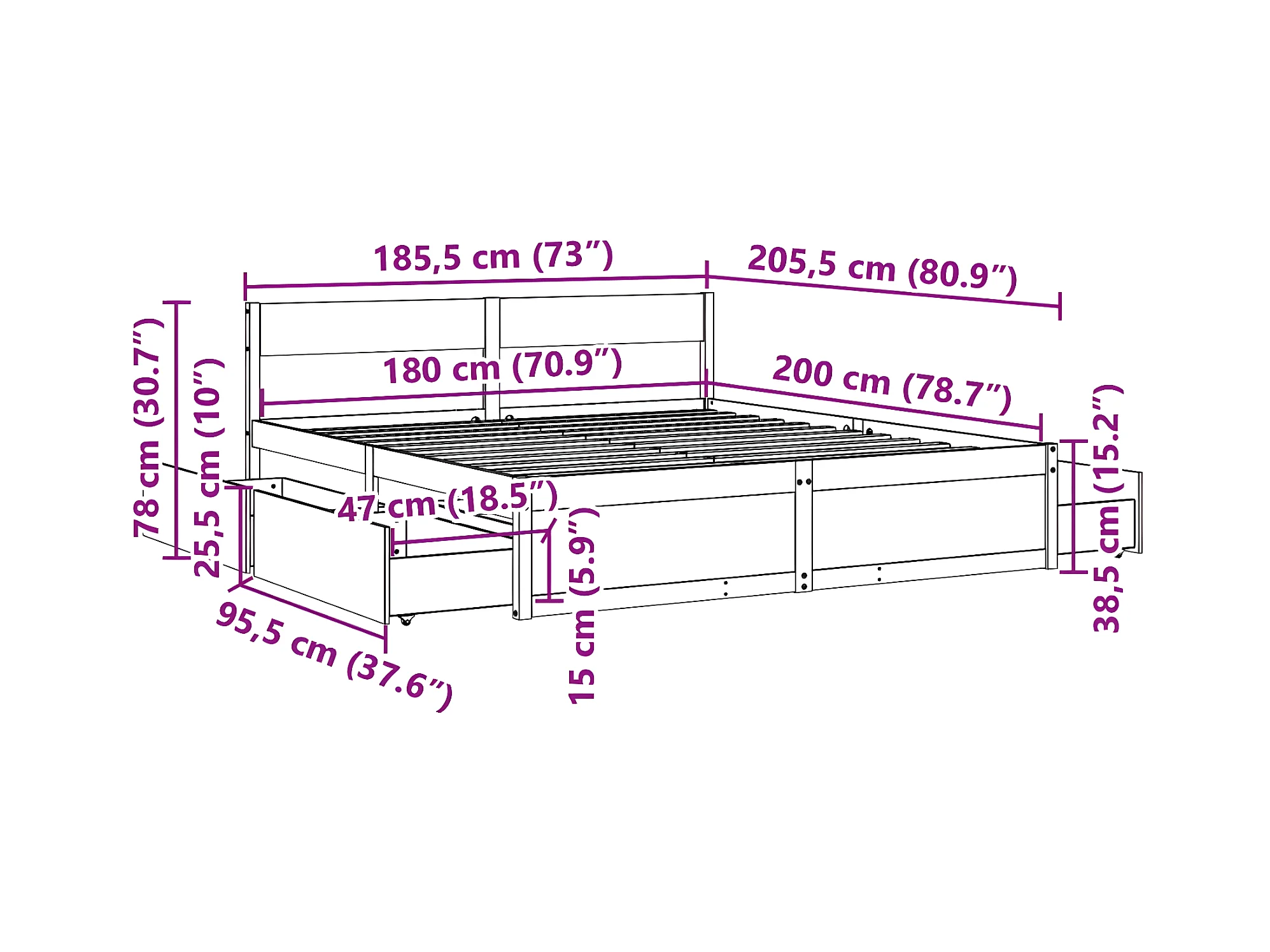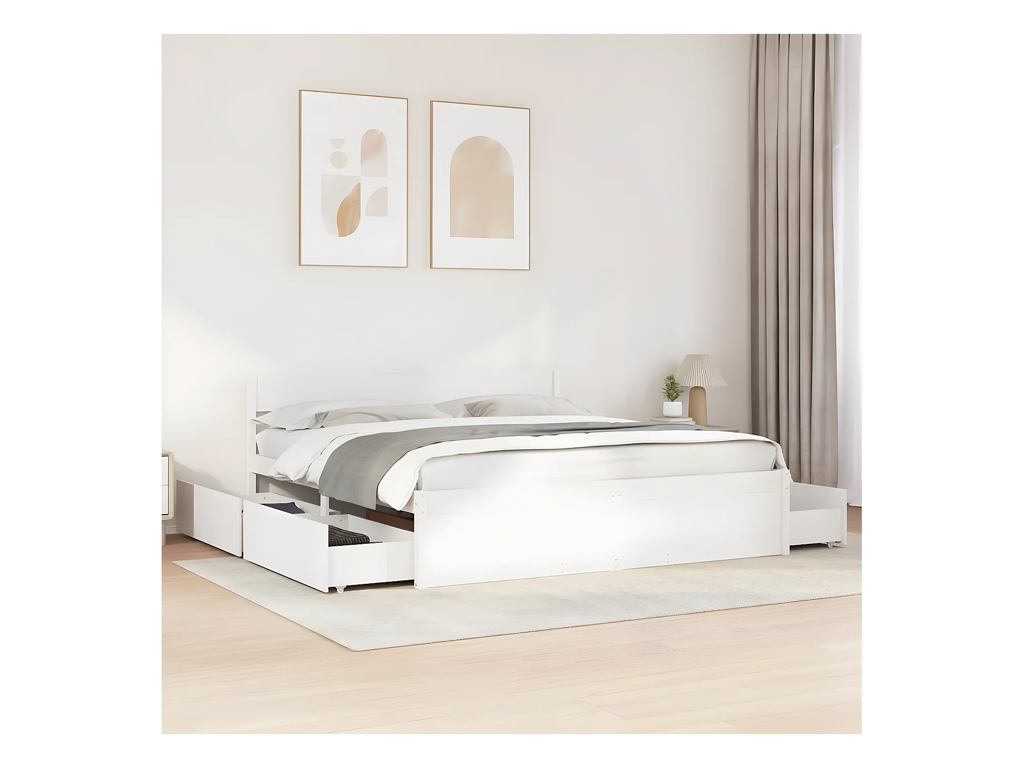 Cadre de lit avec tiroirs blanc 180x200 cm bois de pin massif