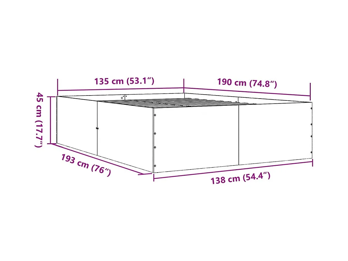 Cadre de lit blanc 135x190 cm bois d'ingénierie