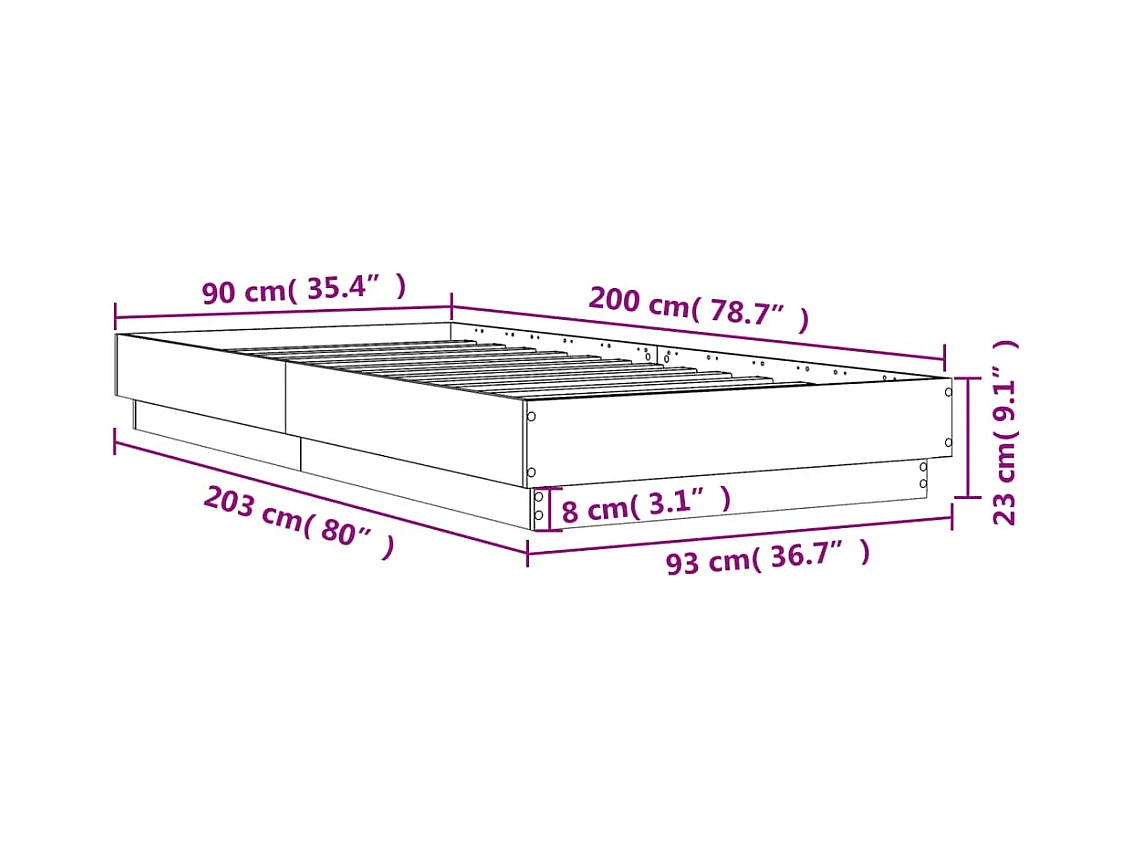 Cadre de lit blanc 90x200 bois d'ingénierie