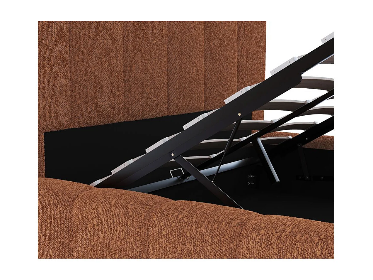Cadre de lit BULLE rembourré avec coffre en tissu bouclette terracotta - couchage 180x200cm