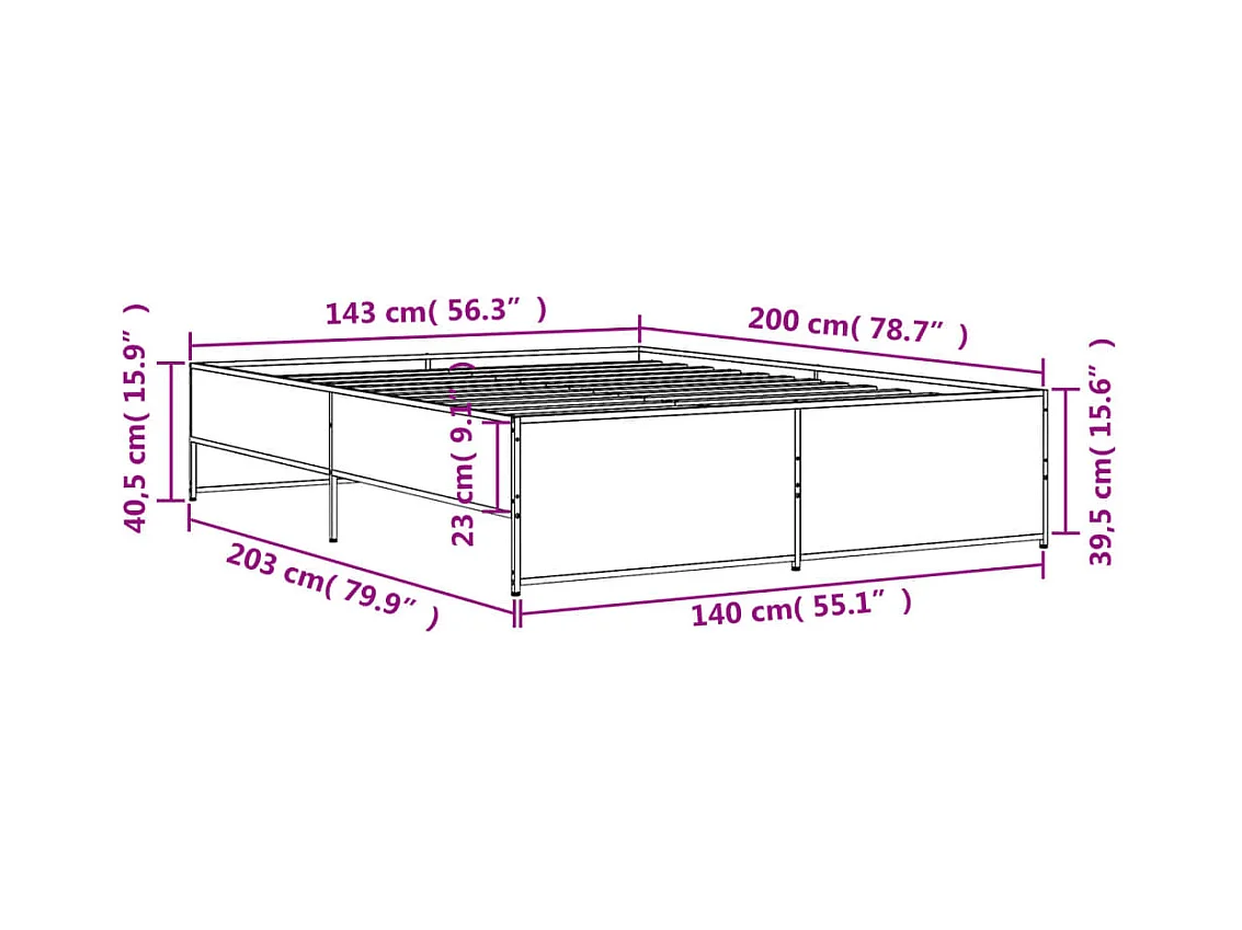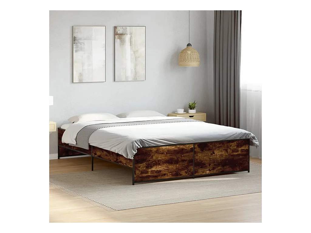 Cadre de lit chêne fumé 140x200 bois d'ingénierie et métal