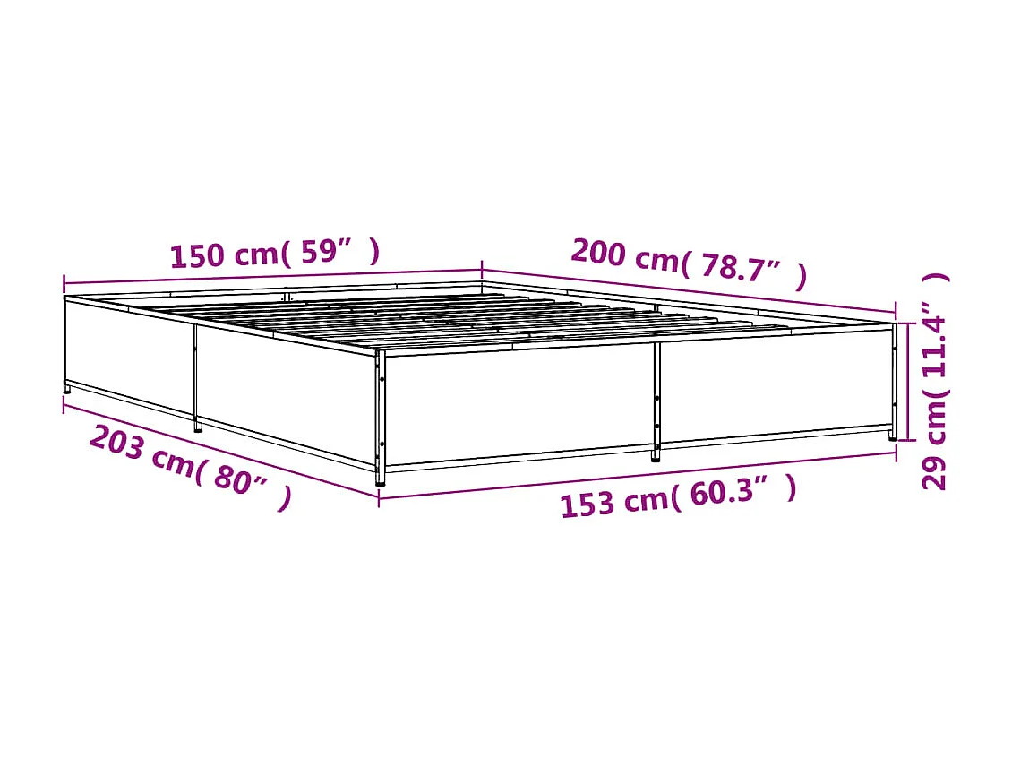 Cadre de lit chêne fumé 150x200 bois d'ingénierie et métal