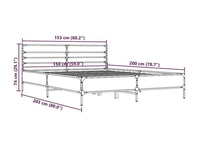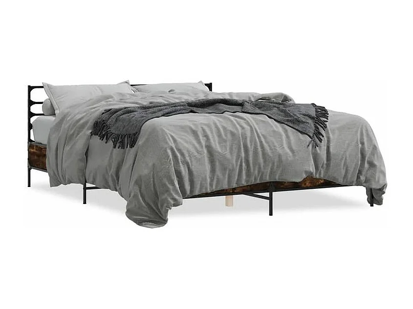 Cadre de lit chêne fumé 150x200 bois d'ingénierie et métal