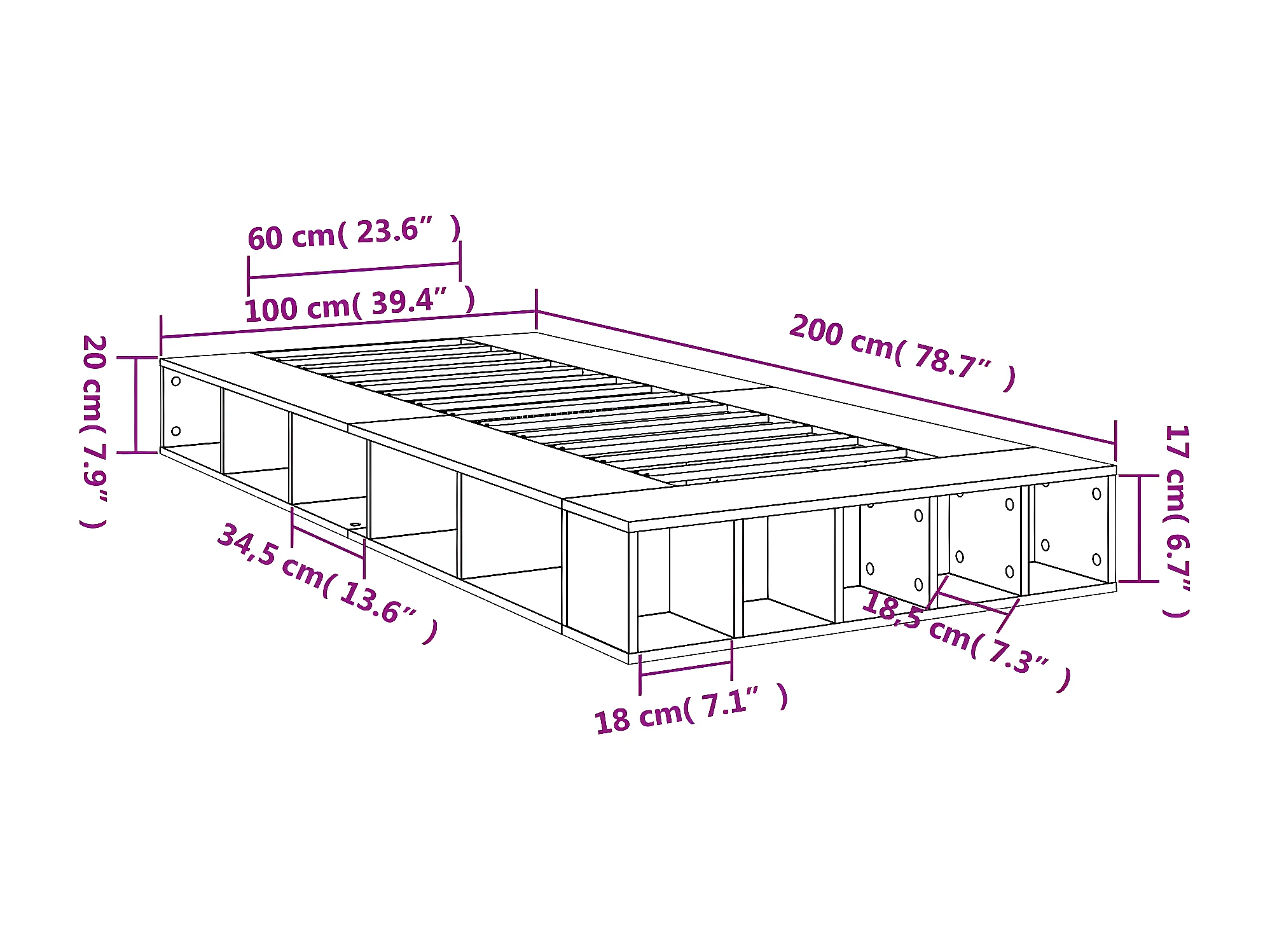 Cadre de lit chêne marron 100x200 bois d'ingénierie