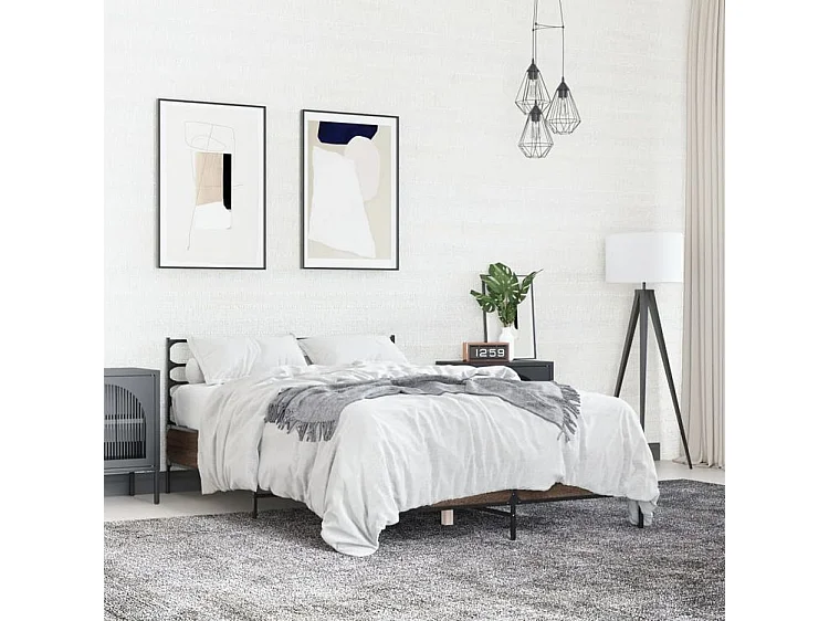 Cadre de lit chêne marron 140x200 bois d'ingénierie et métal