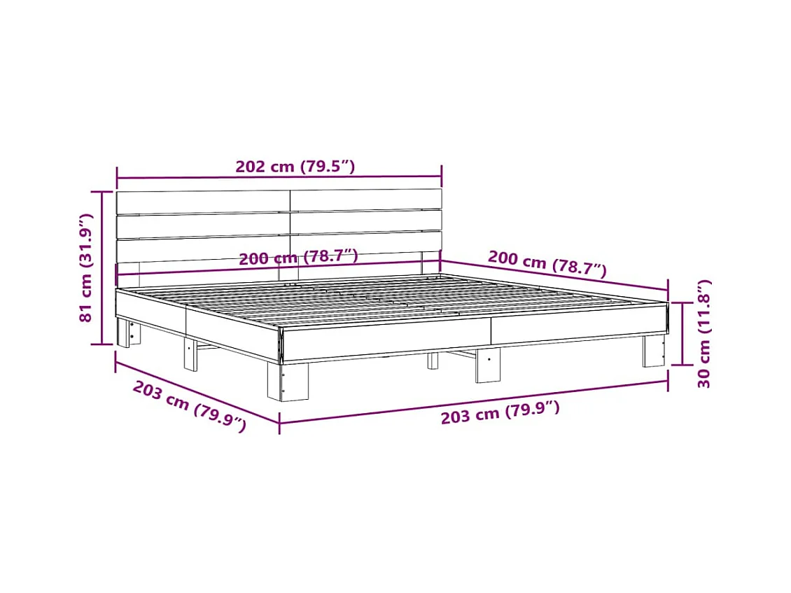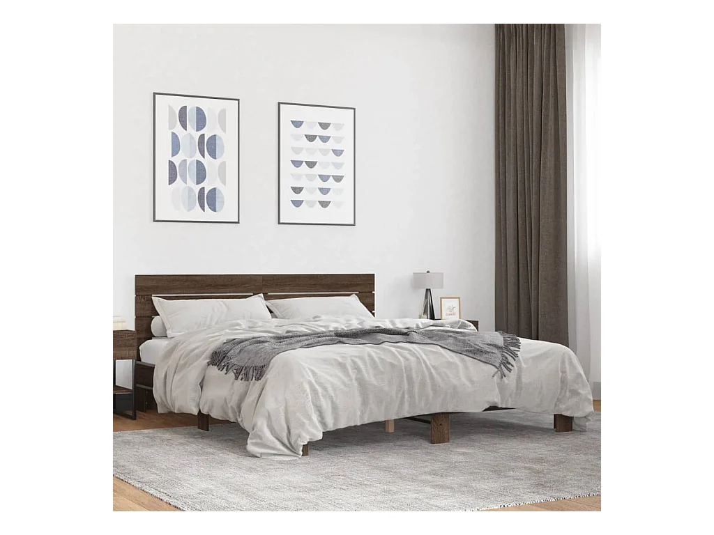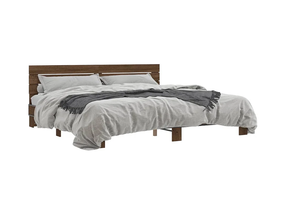 Cadre de lit chêne marron 200x200 bois d'ingénierie et métal