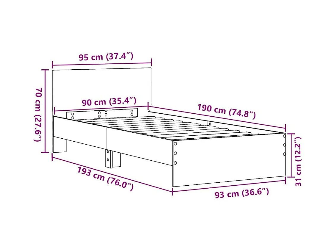Cadre de lit Chêne noir 90 x 190 cm Bois d'ingénierie