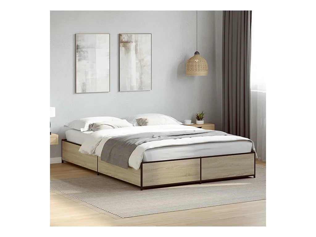 Cadre de lit chêne sonoma 120x190 bois d'ingénierie et métal