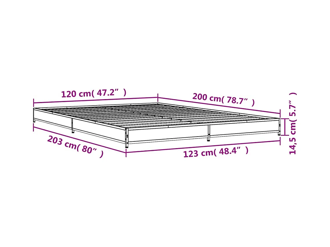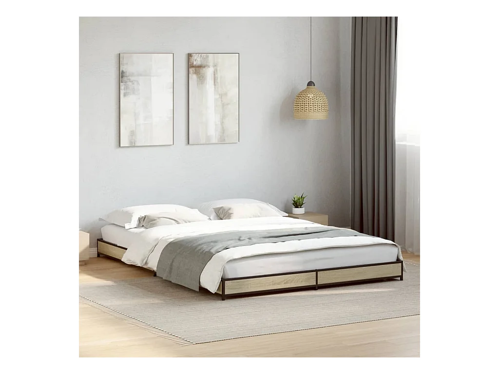 Cadre de lit chêne sonoma 120x200 bois d'ingénierie et métal