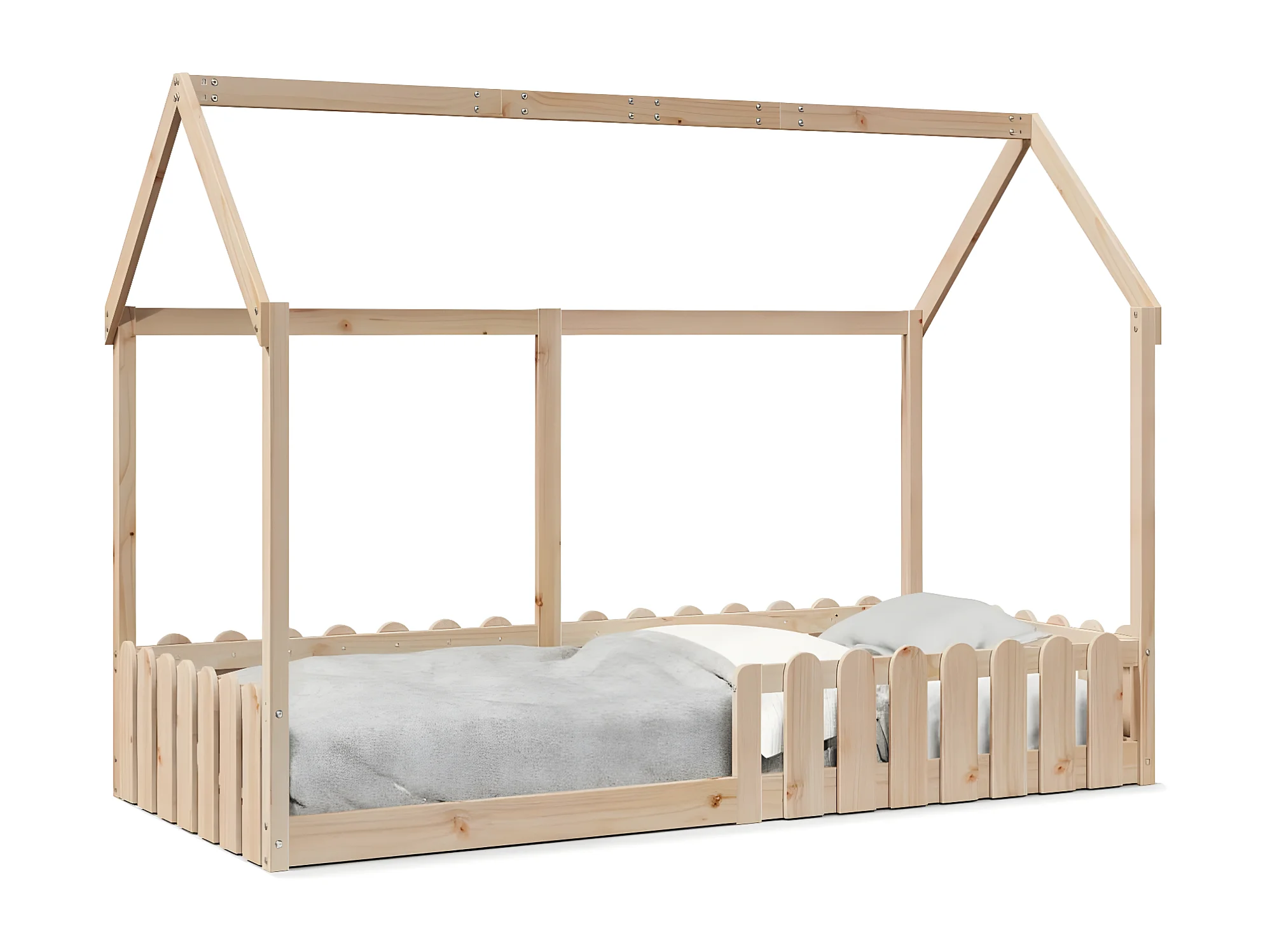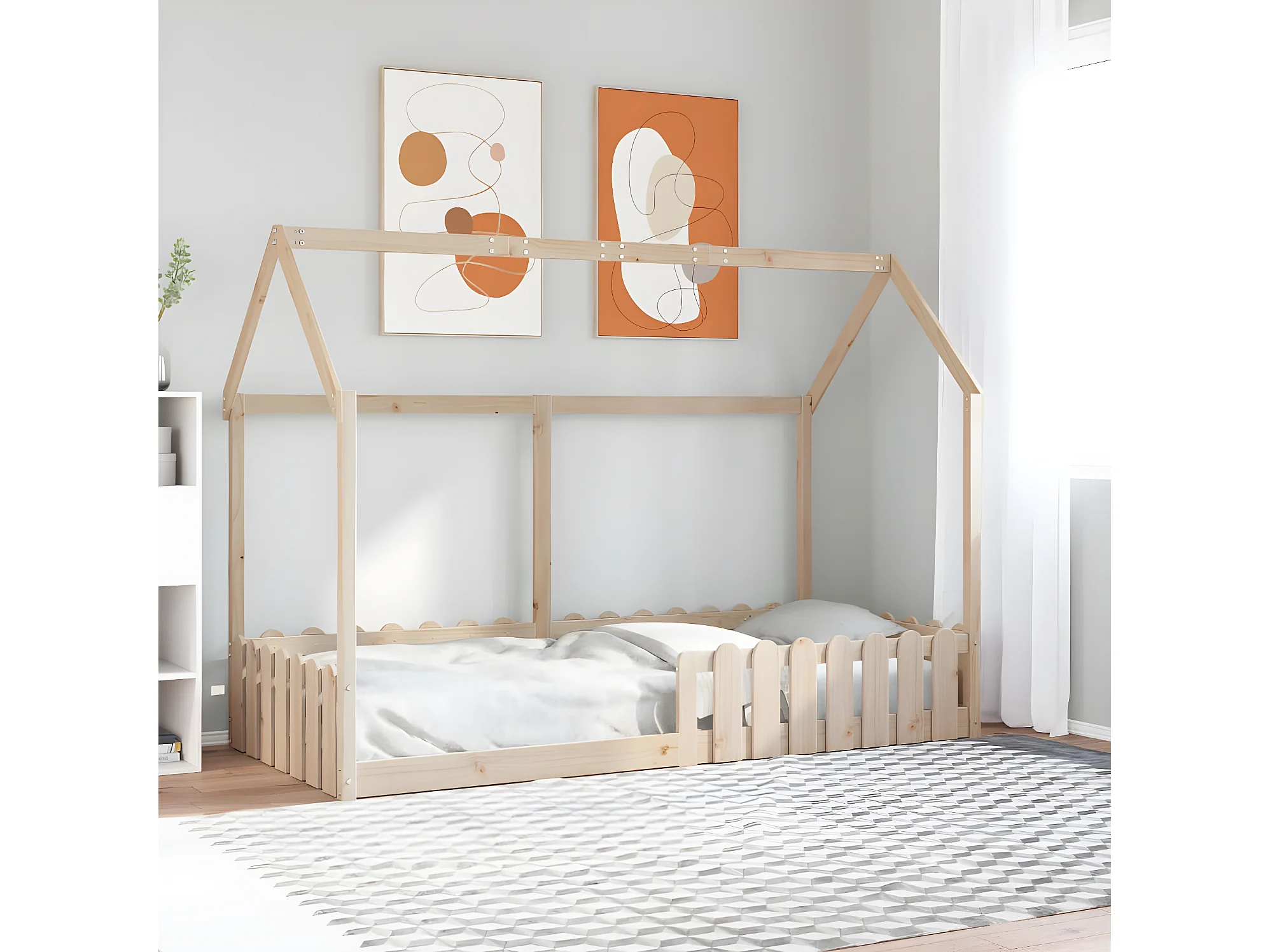 Cadre de lit d'enfants forme de maison 90x190cm bois massif pin