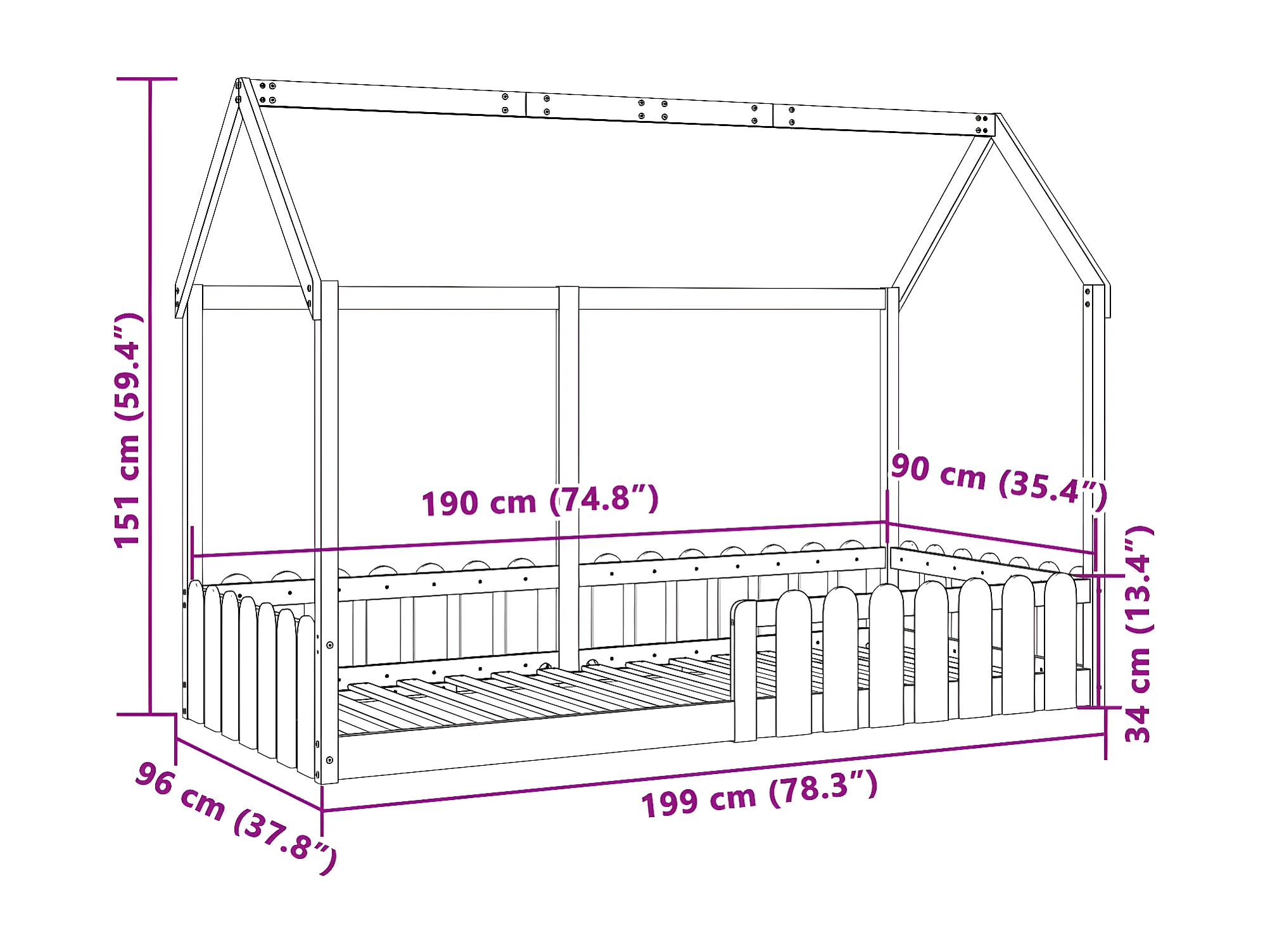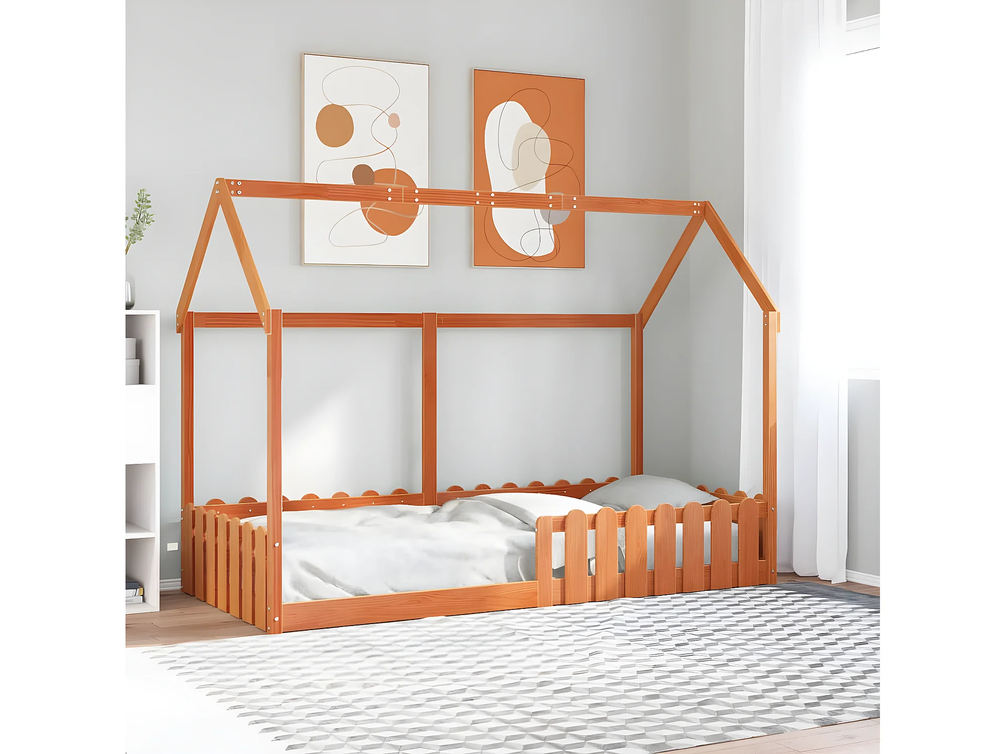 Cadre de lit d'enfants forme de maison 90x190cm bois massif pin