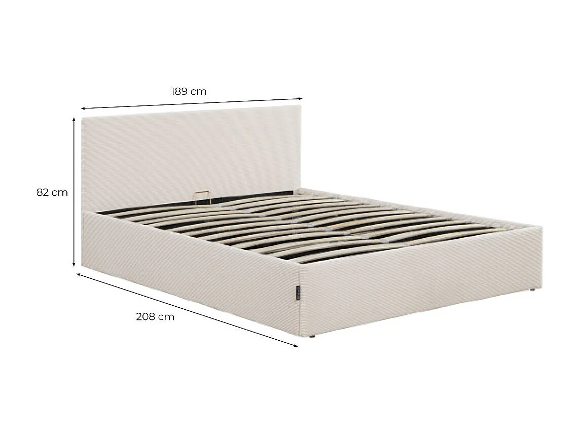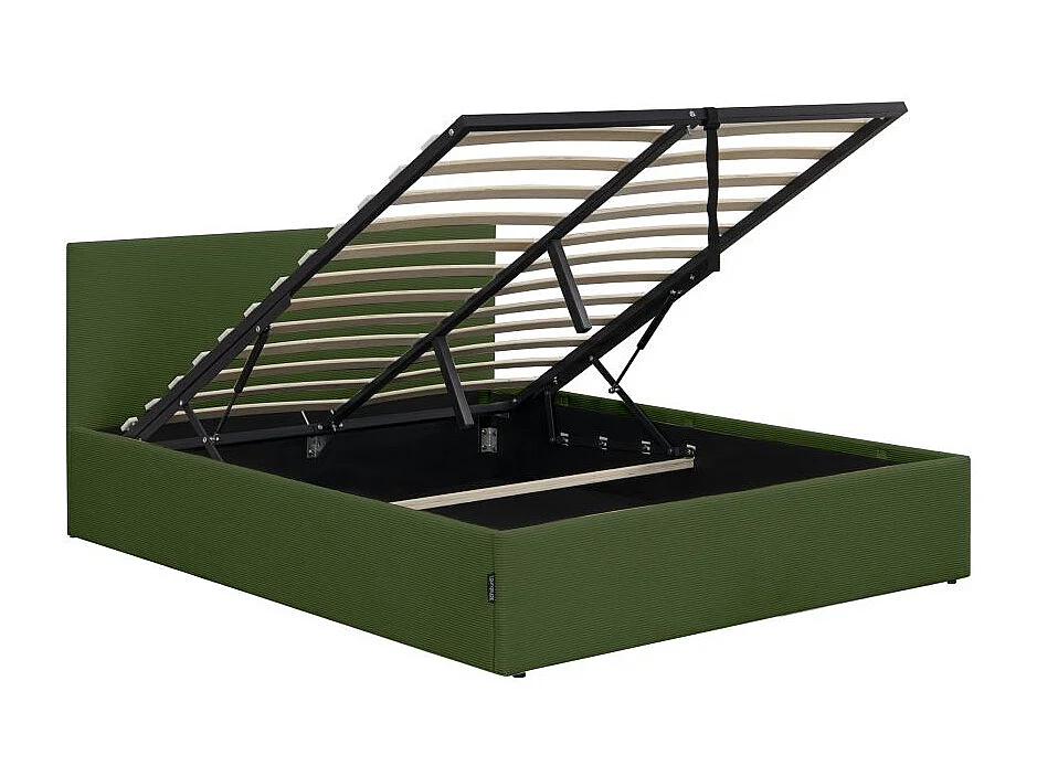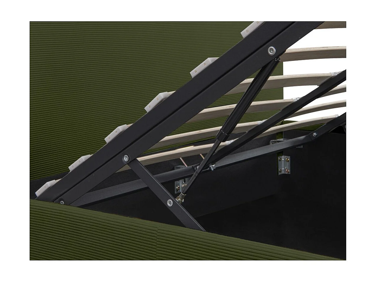 Cadre de lit EDGAR avec coffre de rangement et tête de lit en velours côtelé vert - couchage 180x200cm