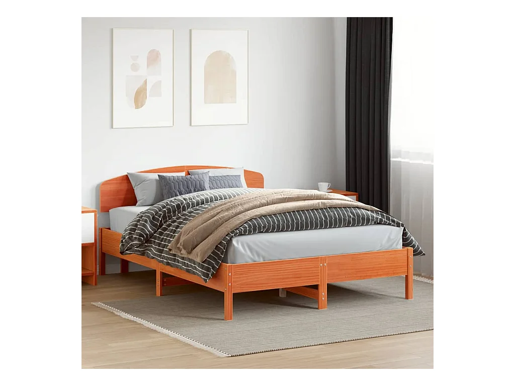 Cadre de lit et tête de lit cire marron 140x200 bois de pin