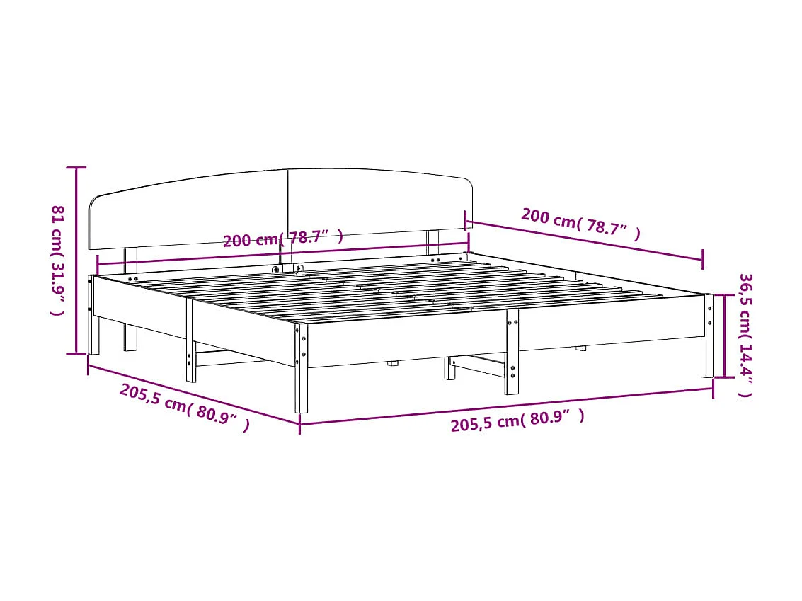 Cadre de lit et tête de lit cire marron 200x200 bois de pin
