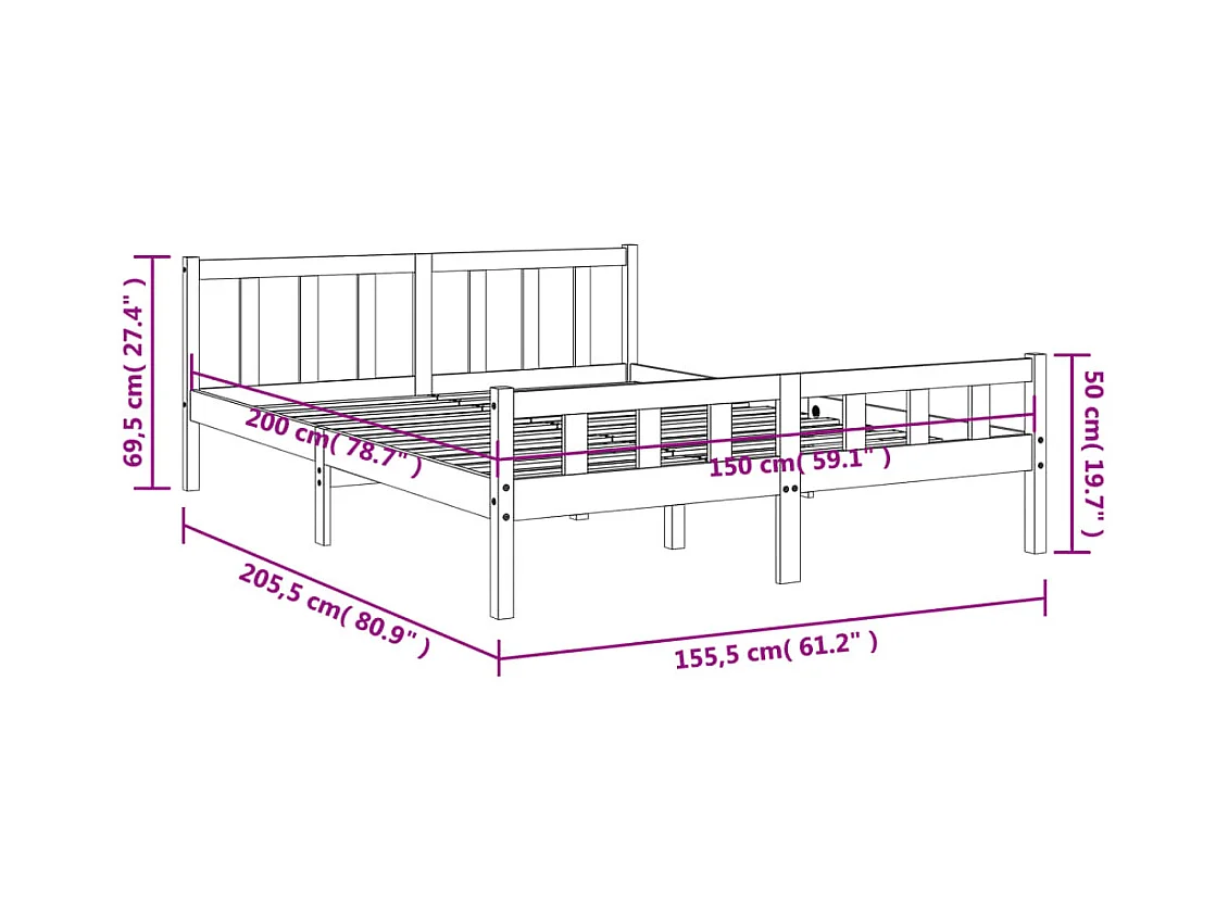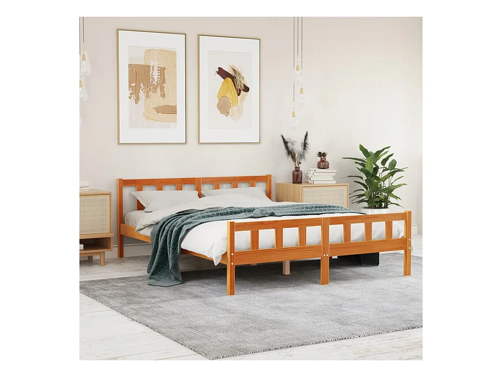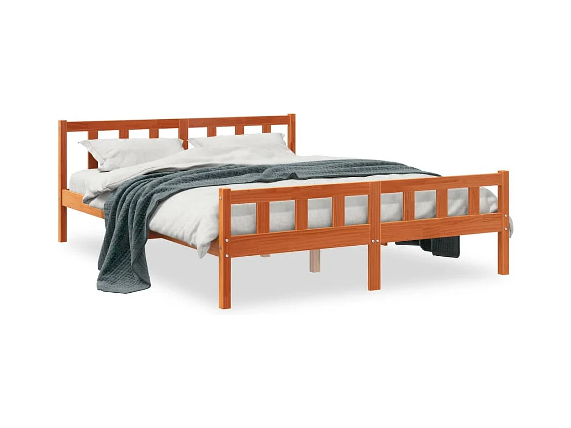Cadre de lit et tête de lit marron 150x200 bois de pin