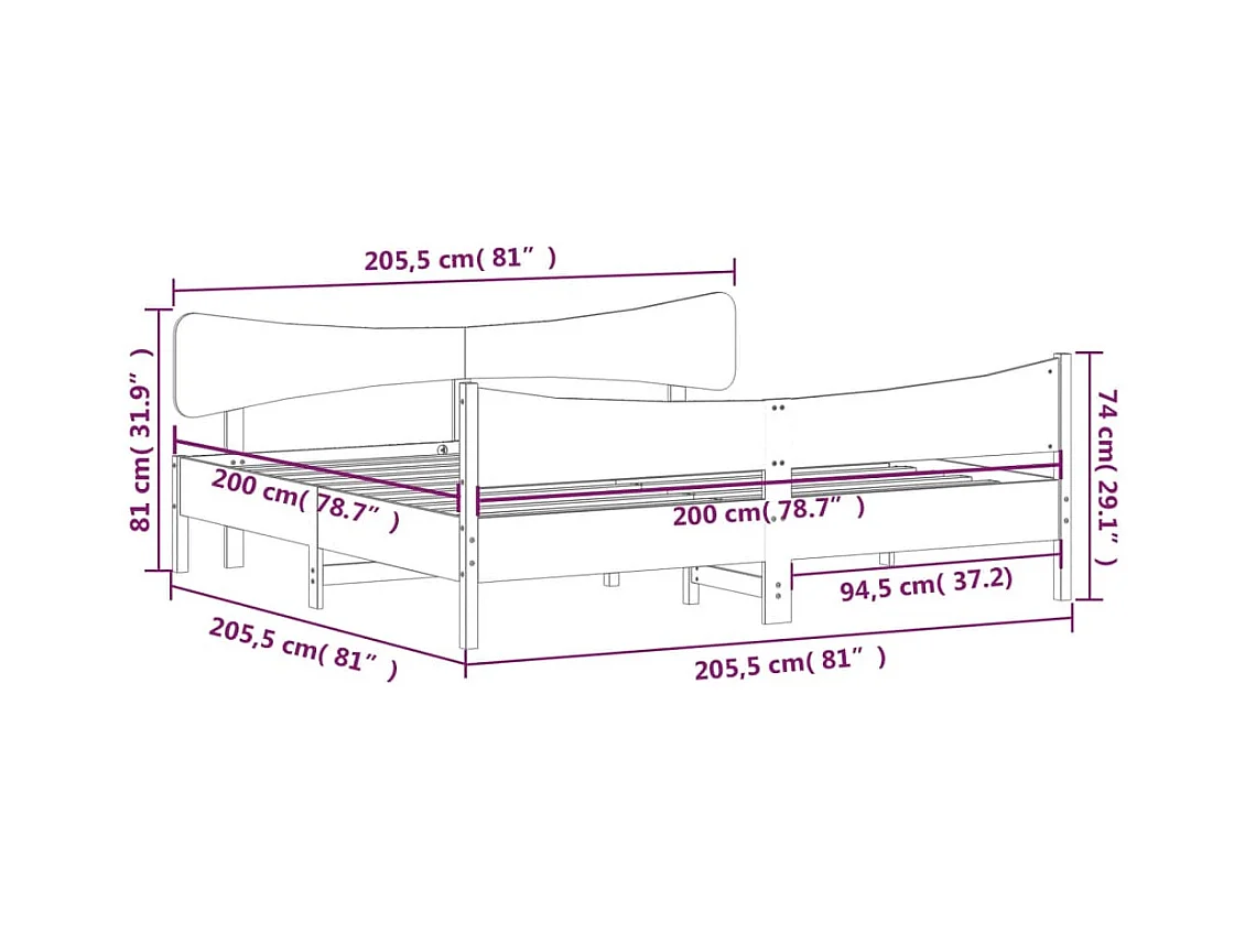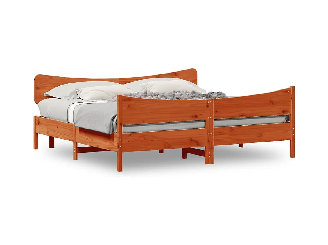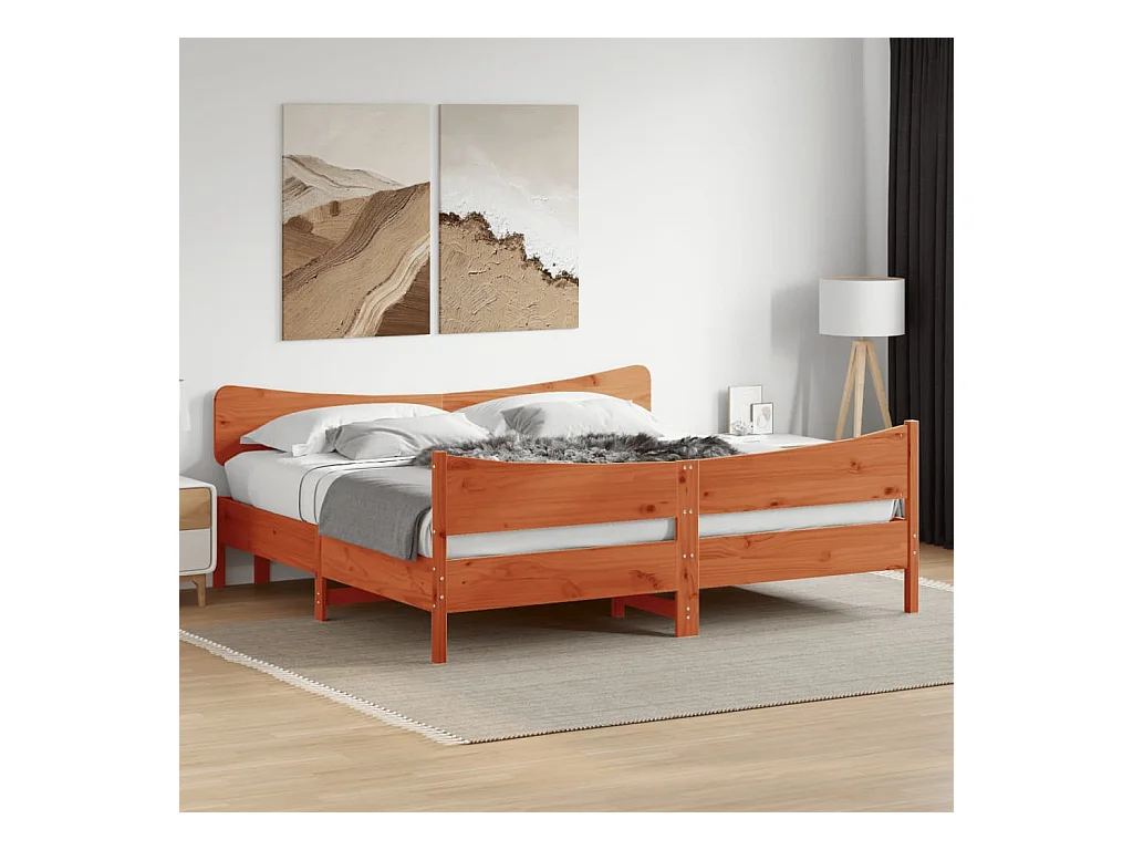 Cadre de lit et tête de lit marron 200x200 bois de pin