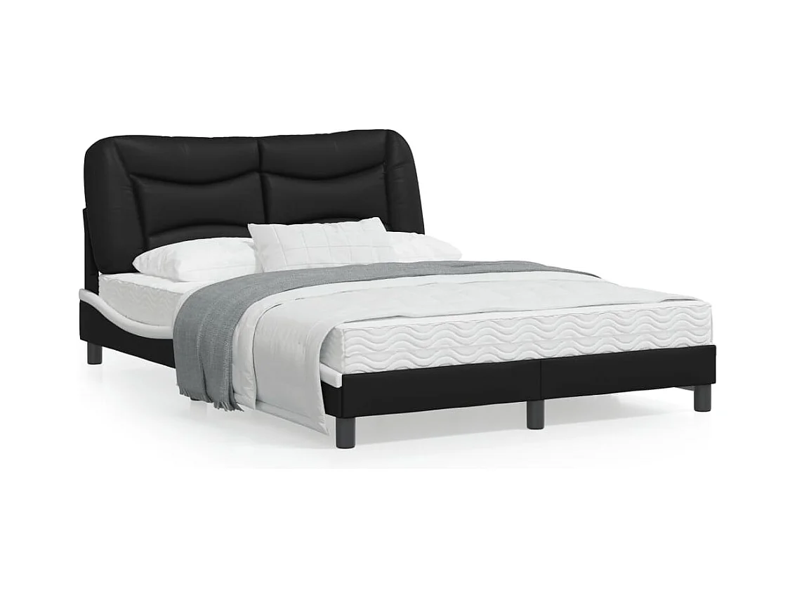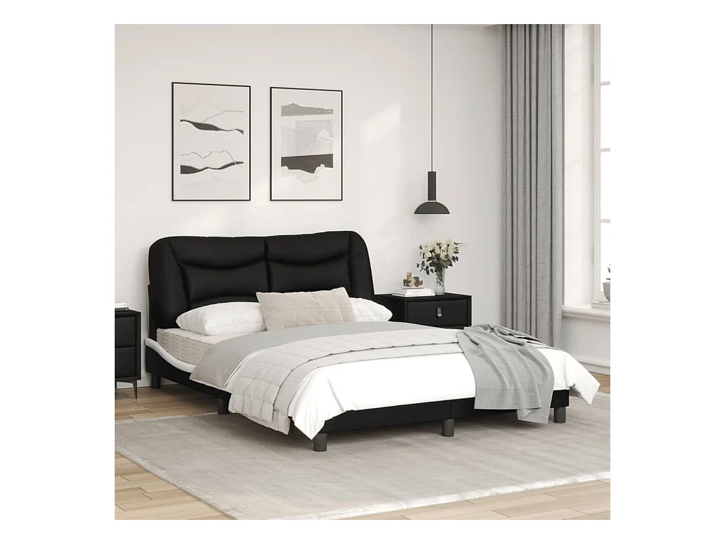 Cadre de lit et tête de lit noir et blanc 140x190 similicuir
