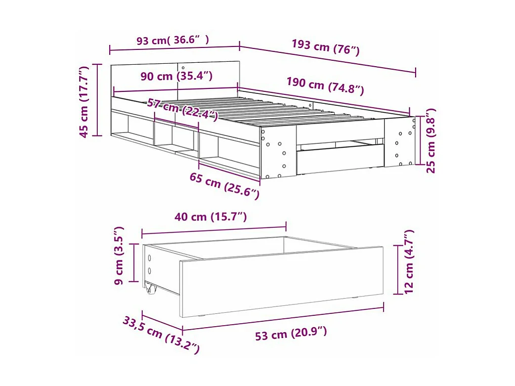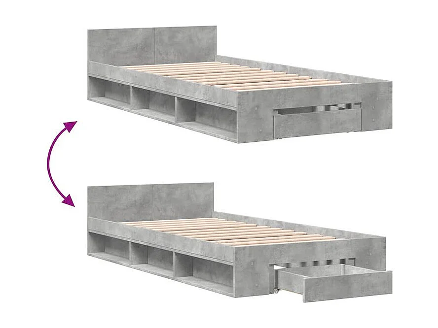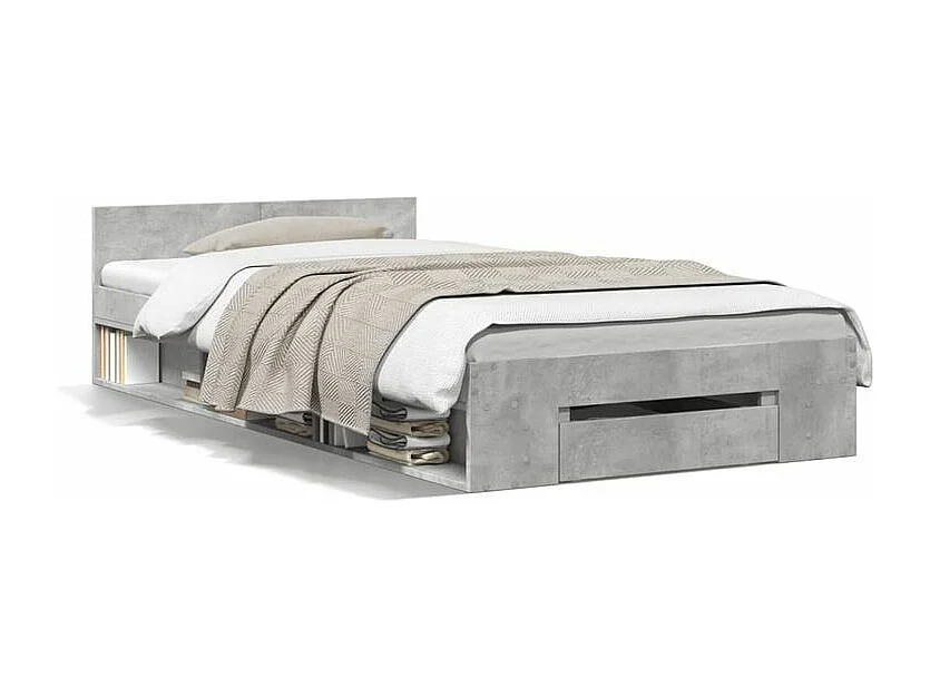 Cadre de lit et tiroir gris béton 90x190 bois d'ingénierie