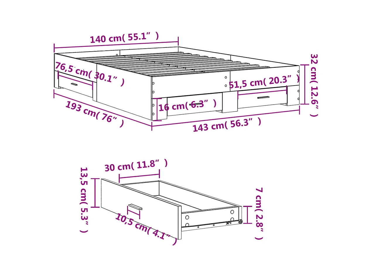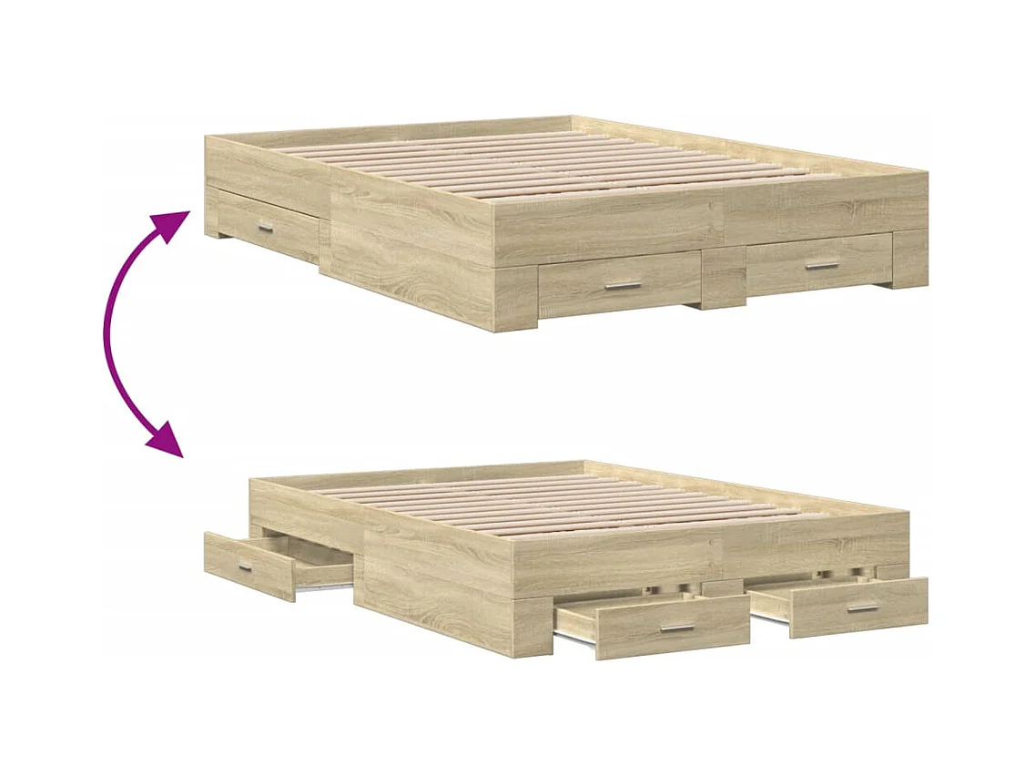 Cadre de lit et tiroirs chêne sonoma 140x190 cm bois ingénierie