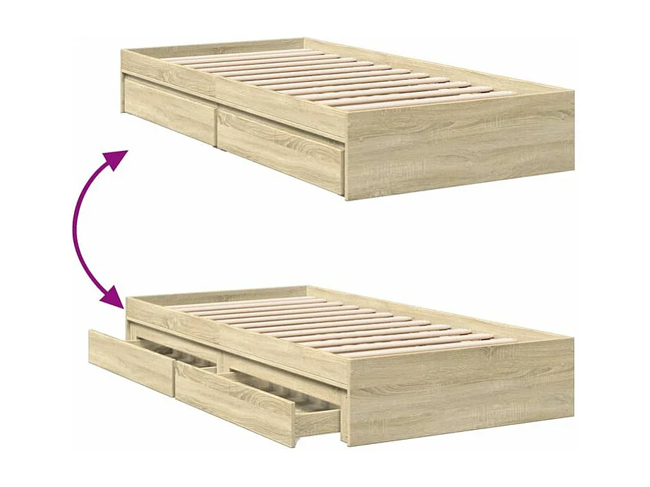 Cadre de lit et tiroirs chêne sonoma 90x200 bois d'ingénierie